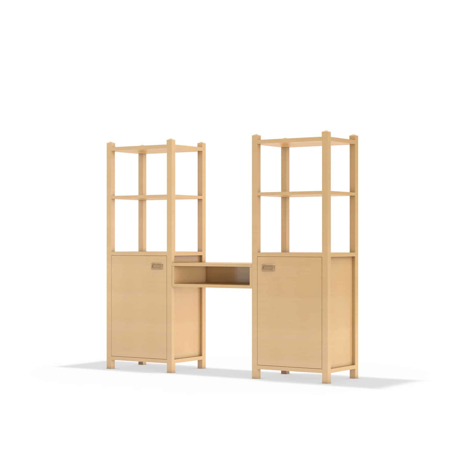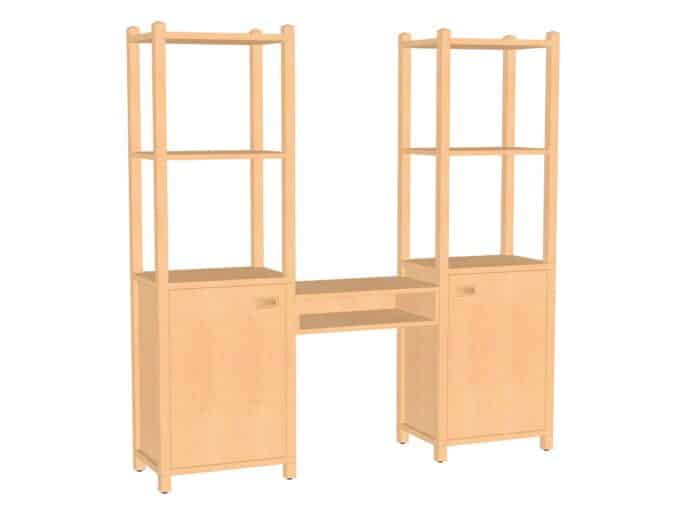 Das Stollen-Regalsystem „Meine“ bietet eine durchdachte und platzsparende Aufbewahrungslösung, ideal für Kindergärten und Schulen. Dieses System kombiniert praktische Stauraummöglichkeiten mit einem integrierten Arbeitsplatz und passt sich flexibel an die Bedürfnisse Ihrer Einrichtung an.