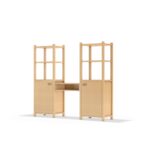 - Weiterer Turm: Unten mit Tür und zwei Einlegeböden; oben offenes Regal (ohne Rückwand) mit einem Einlegeboden