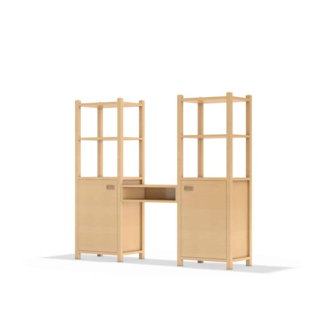 Das Stollen-Regalsystem „Meine“ vereint Funktionalität und Stil in einer vielseitigen Aufbewahrungseinheit. Es bietet Platz für Materialien und Arbeitsfläche für kreative Aktivitäten, Lernphasen oder organisatorische Aufgaben und schafft so eine gut strukturierte und ansprechende Umgebung in Ihrer pädagogischen Einrichtung.