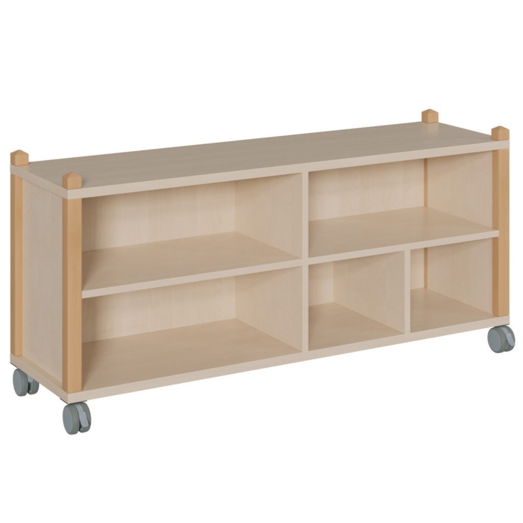 Stollenregal fahrbar – 3 große und 2 kleine Fächer – Höhe: 63,5 cm für Kindergarten & Krippen