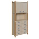 • Geräumiger Oberschrank für große Gegenstände: Oberhalb der Schubladenkommode befindet sich ein breiter Schrank mit zwei Türen. Hier finden Ordner, Bücher, Spielzeugkisten oder vertrauliche Unterlagen einen sicheren und staubgeschützten Platz. Die verstellbaren Einlegeböden ermöglichen eine flexible Innenaufteilung.