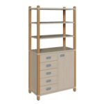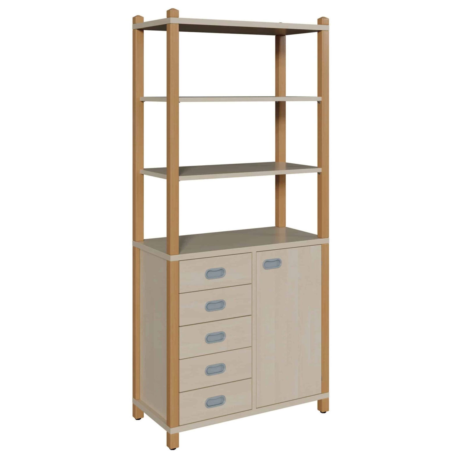 Stollenschrank mit 5 Dekorschüben, Tür und Regalaufsatz für Krippen & Kindergarten