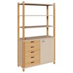 Stollenschrank mit 5 Massivholzschüben, 1 Tür und Regalaufsatz für Krippen & Kindergarten