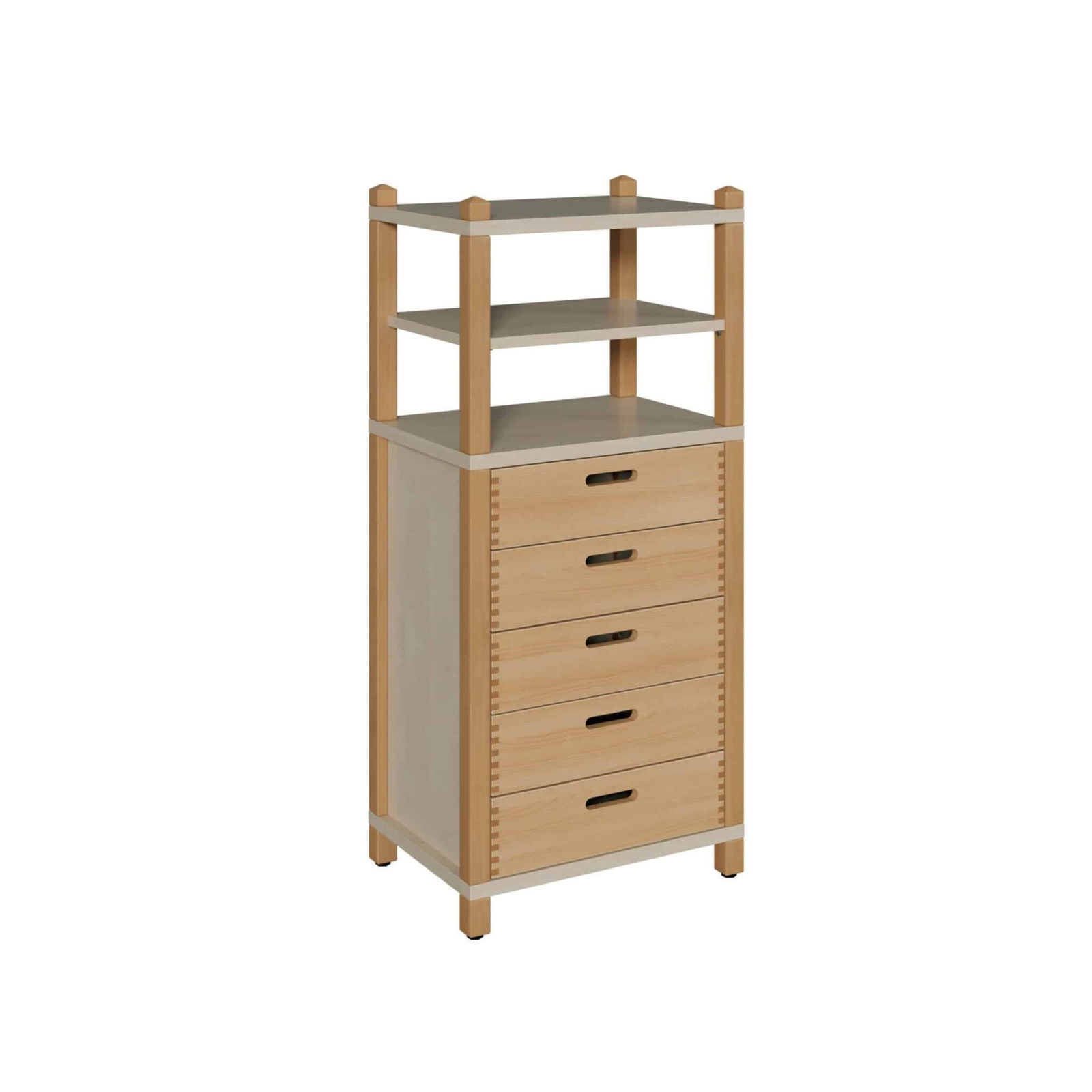 Stollenschrank mit 5 Massivholzschüben und Regalaufsatz Breite 56 cm für Krippen & Kindergarten