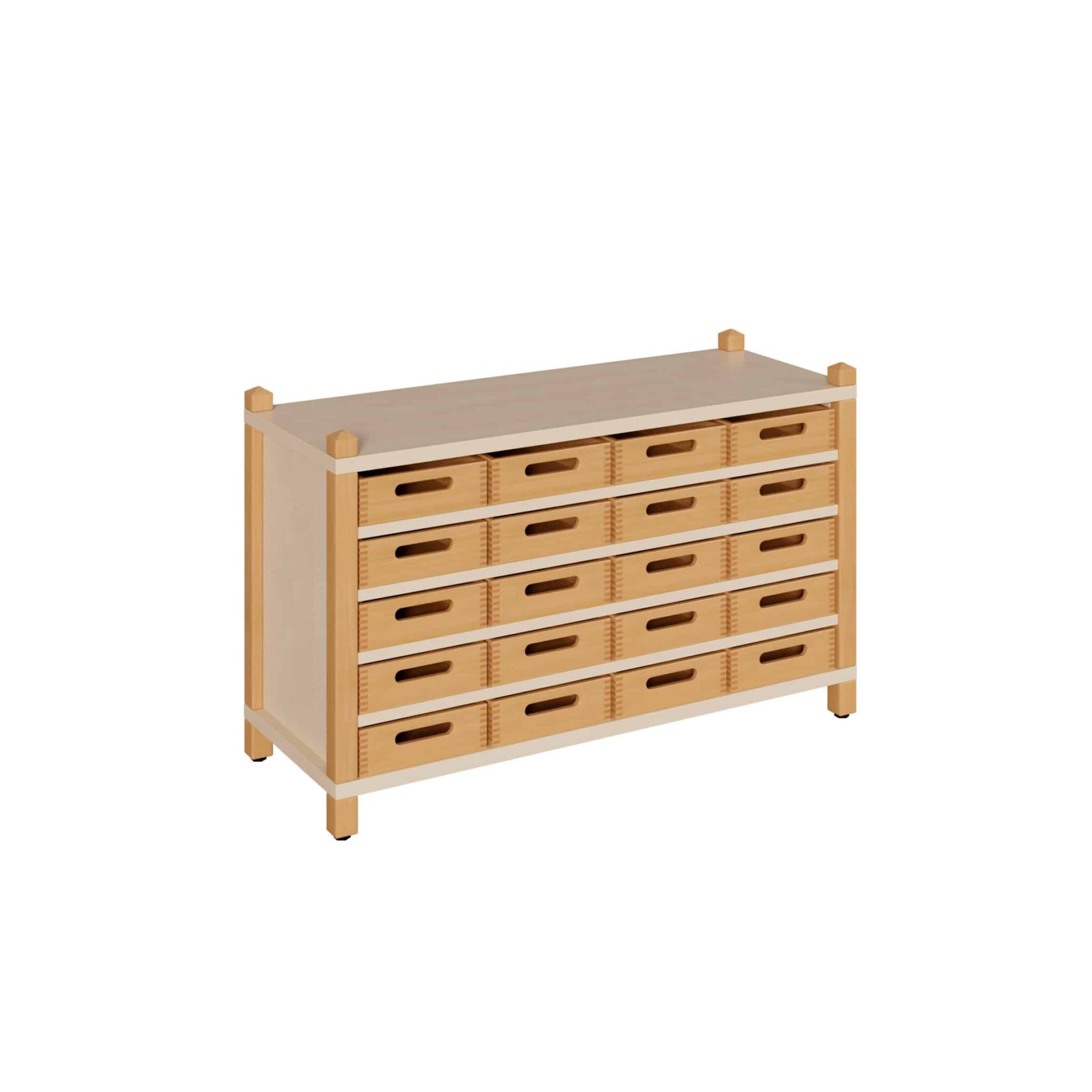 Stollenschrank mit flachen Massivholzkästen für Krippen & Kindergarten