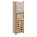 Stollenschrank mit flachen Massivholzkästen und Oberschrank eintürig für Krippen & Kindergarten