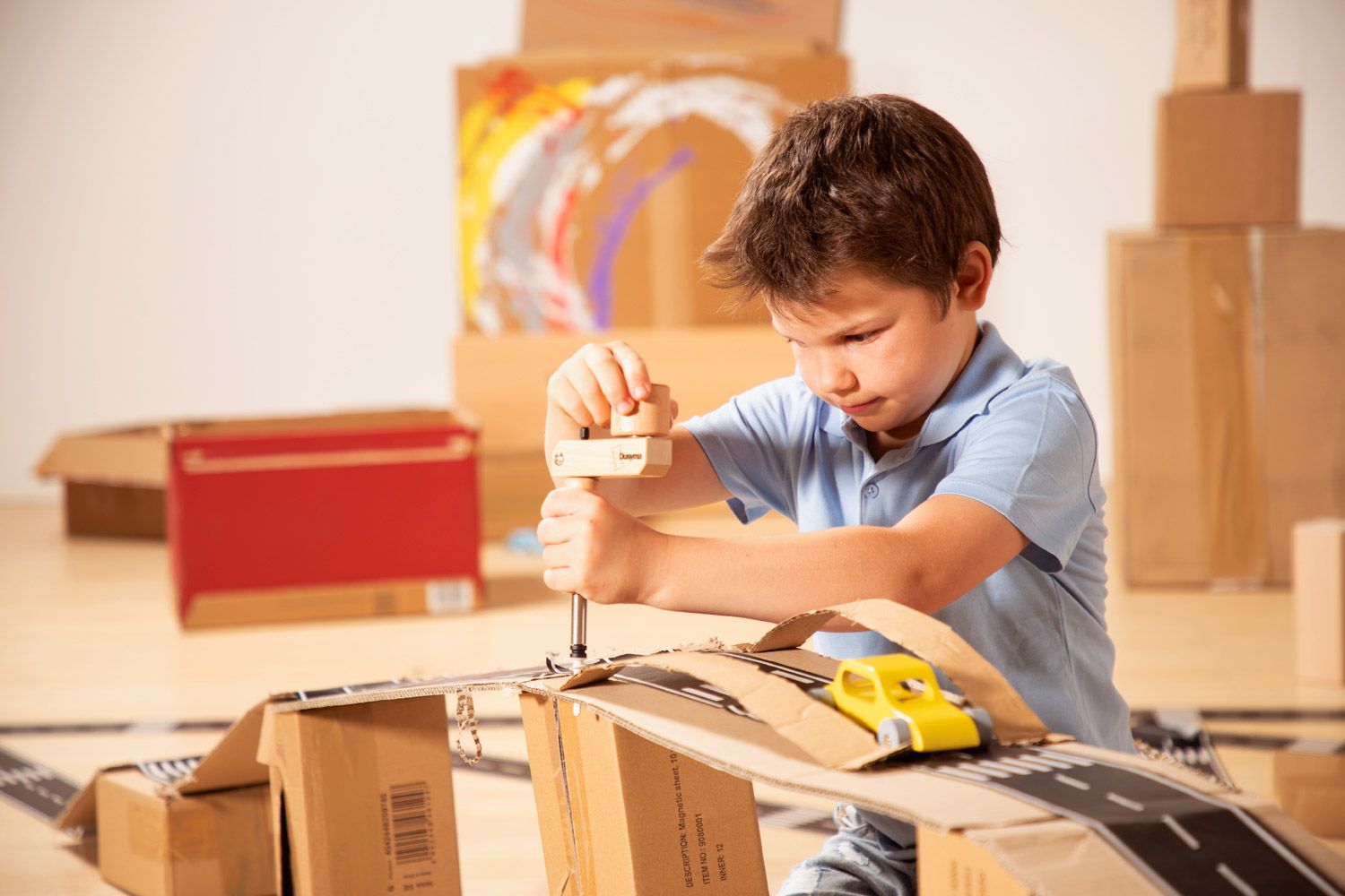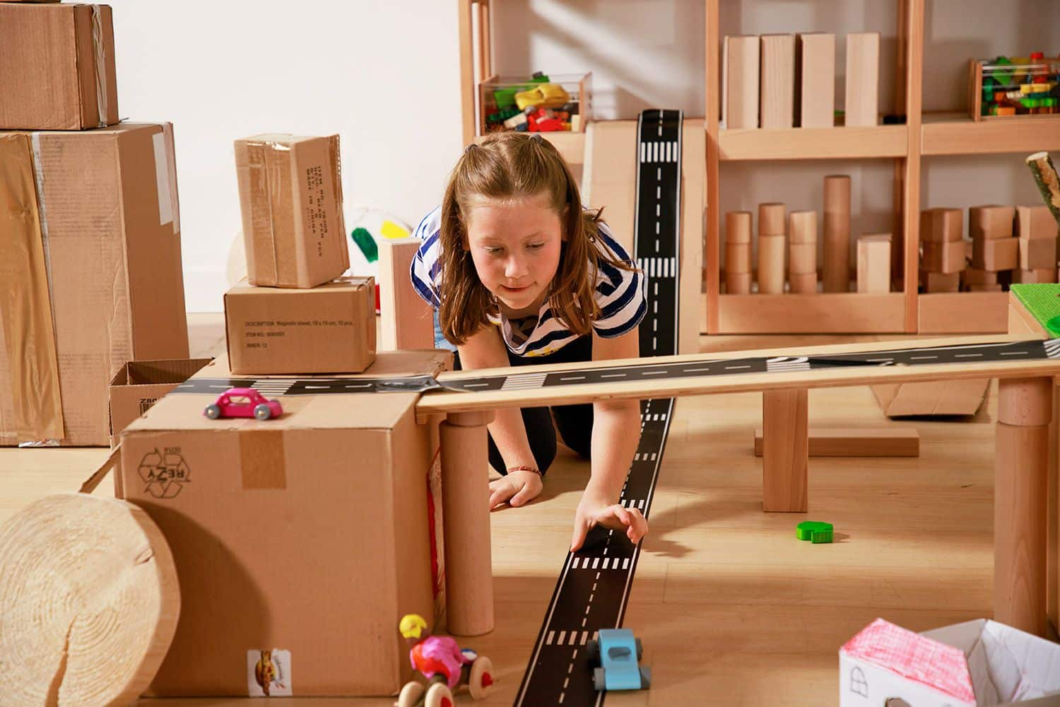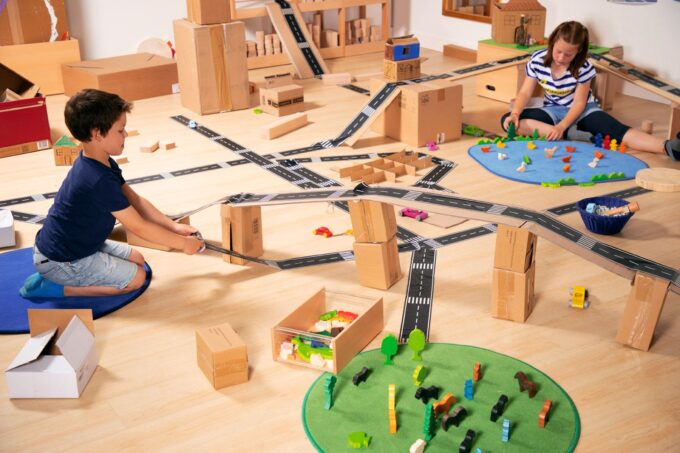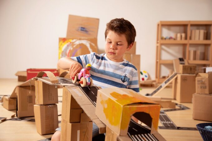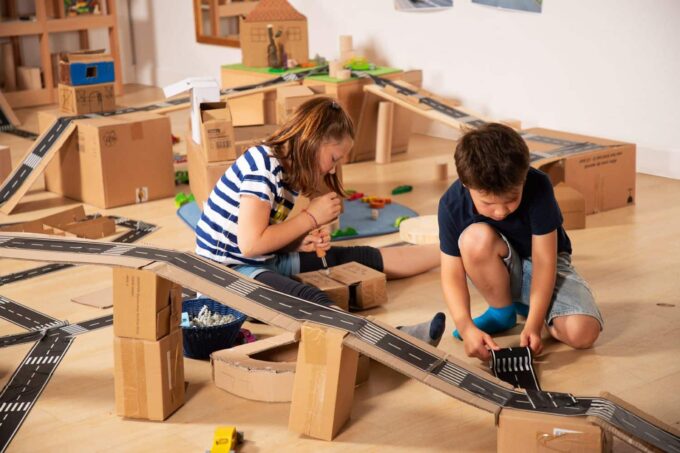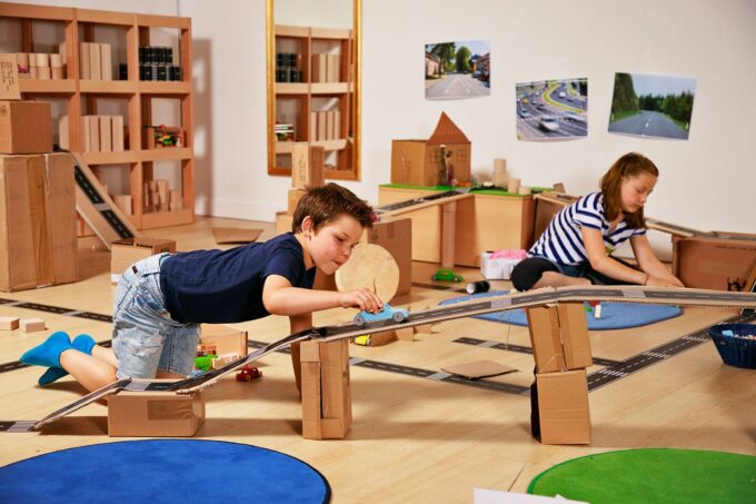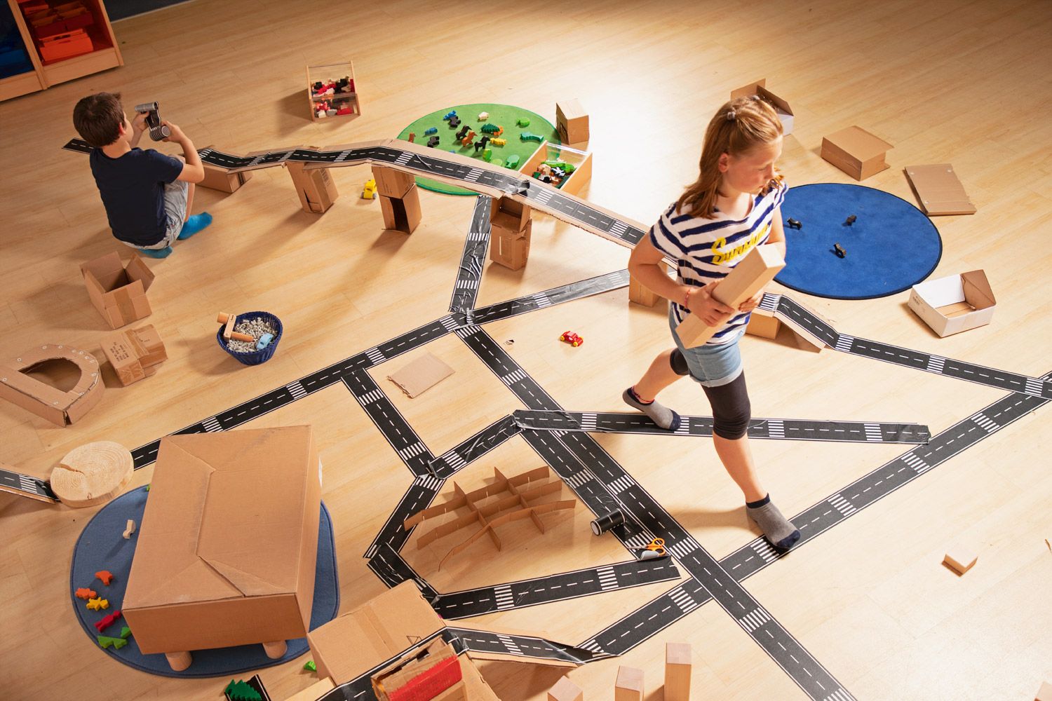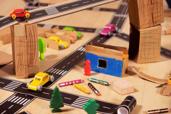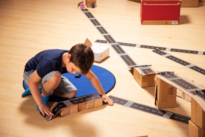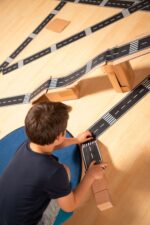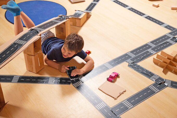 - Förderung der Kreativität: Das Spielen mit dem Straßenband fördert die Kreativität und das kognitive Denken Ihrer Kinder. Sie lernen, Planungen vorzunehmen und ihre Ideen visuell auf die Fläche zu bringen, während sie gleichzeitig spielend ihre motorischen Fähigkeiten trainieren.