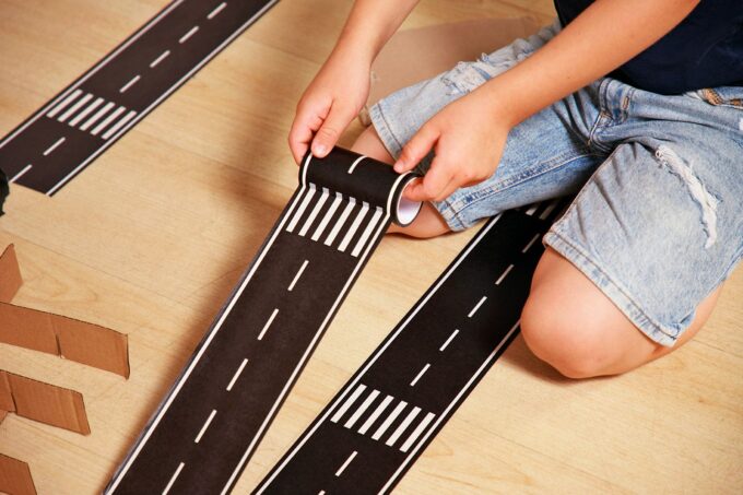 - Vielseitigkeit: Das Straßentape haftet hervorragend auf nahezu allen glatten Oberflächen. Es bietet die Flexibilität, verschiedene Designs zu gestalten und kann auch in Kombination mit anderen Spielzeugen und Materialien verwendet werden.