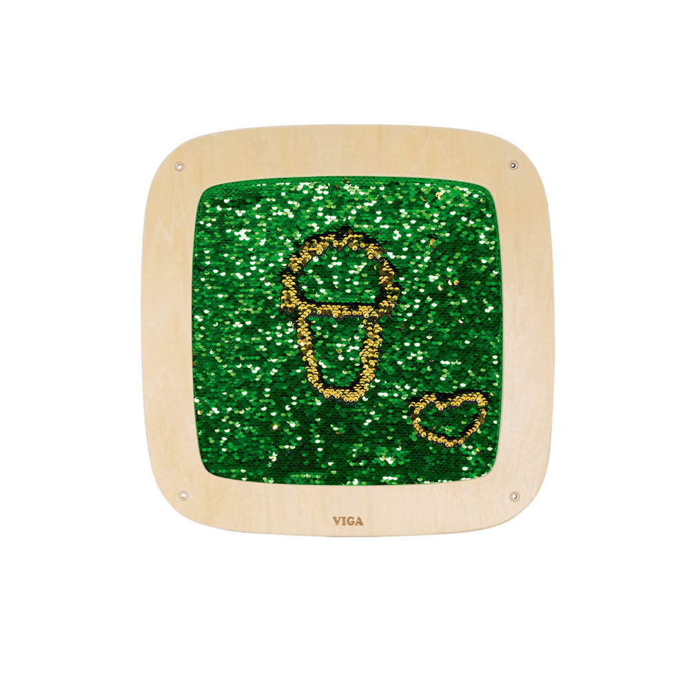 Optisch und qualitativ fügt sich das Paneel perfekt in professionelle Lernumgebungen ein. Die leuchtenden, intensiven Farben der Pailletten bilden einen wunderschönen Kontrast zu dem hellen, beruhigenden Naturholzton des robusten Birkensperrholzes. Die Echtholz-Konstruktion ist absolut langlebig, vollkommen glatt geschliffen und bietet keine scharfen Kanten. Durch die praktische Wandmontage auf Augenhöhe der Kinder entsteht eine dauerhafte, leicht zugängliche Station. Sie beansprucht keinen wertvollen Platz auf dem Fußboden und lädt Kinder stets zu einer ruhigen, konzentrierten Beschäftigung ein.