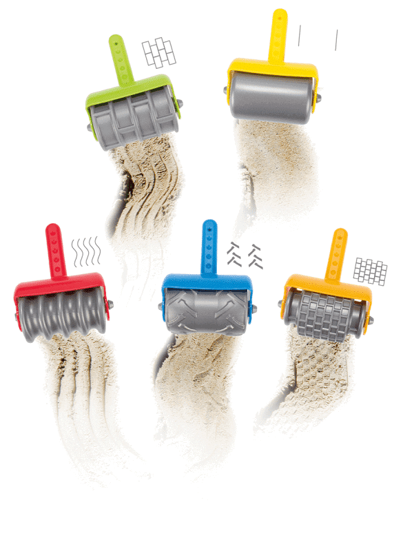 Das Strukturroller-Set ist eine Schatzkiste für kleine Sandkünstler. Mit diesen fünf einzigartigen Mustern verwandeln Kinder jede Sandburg in ein Kunstwerk und jeder Sandweg wird zur Erlebnisstraße.