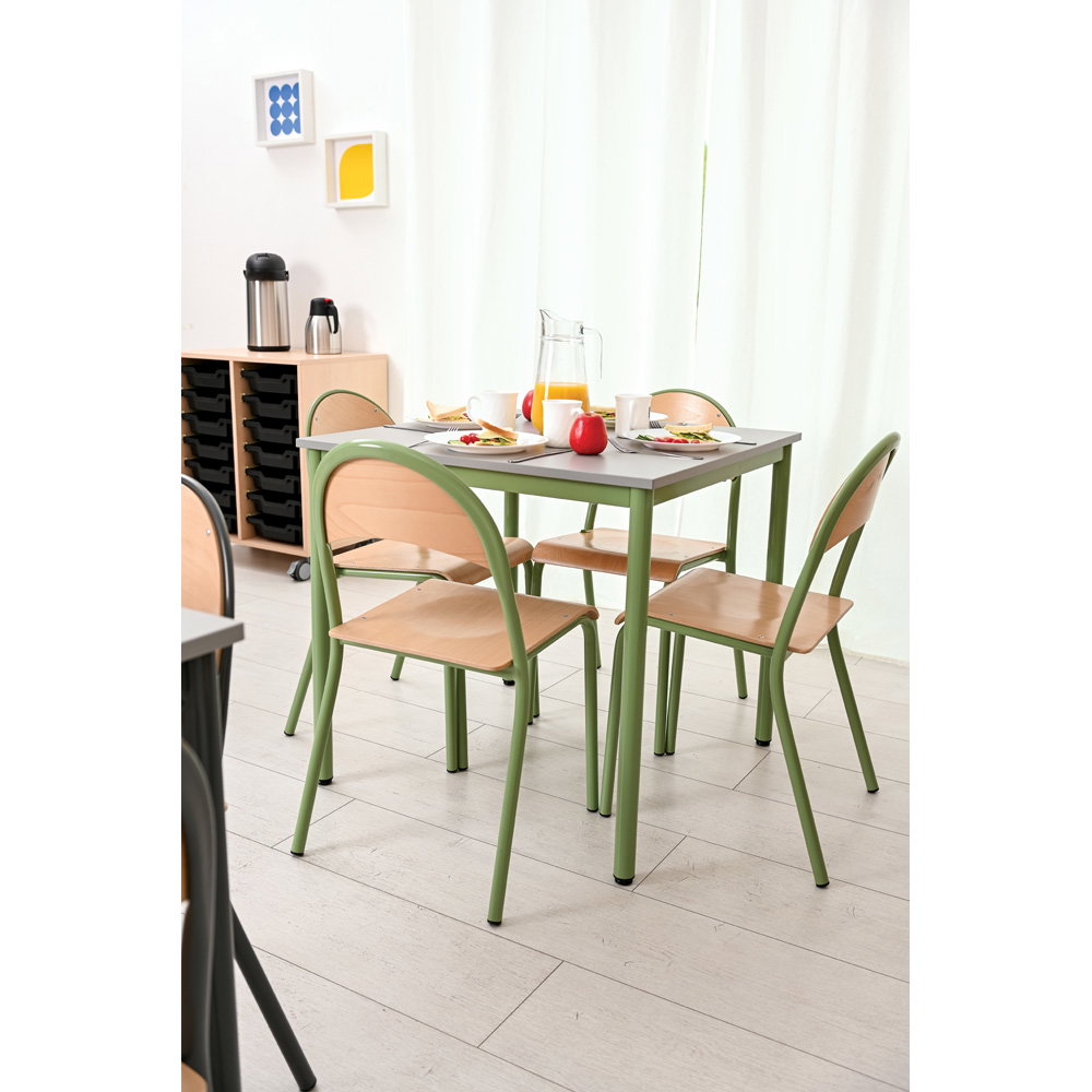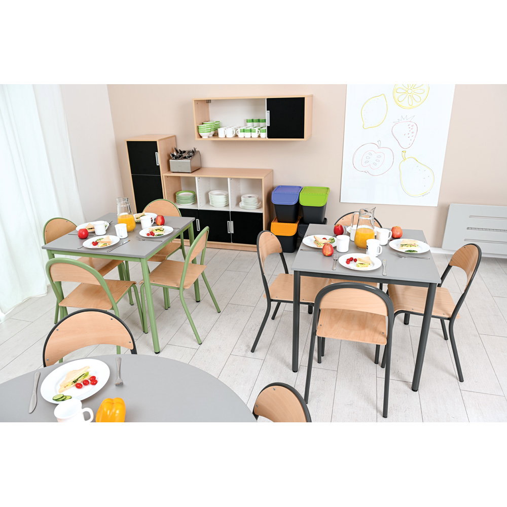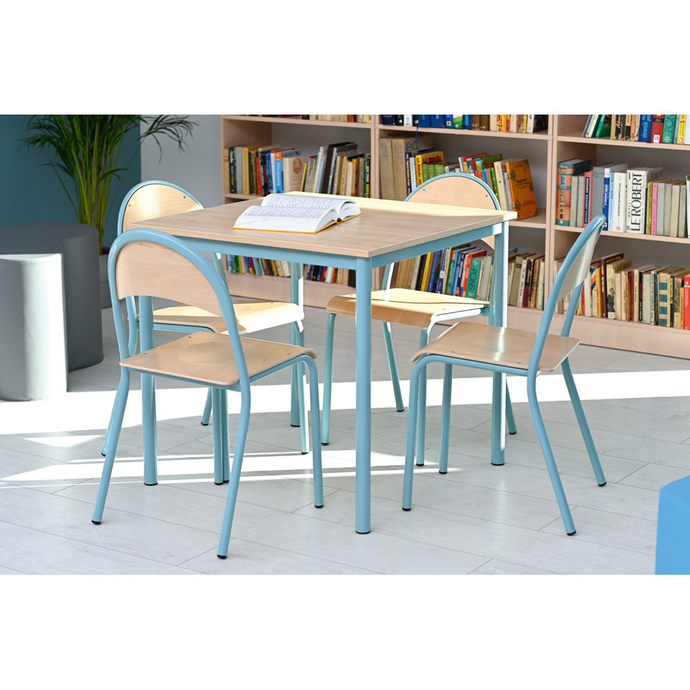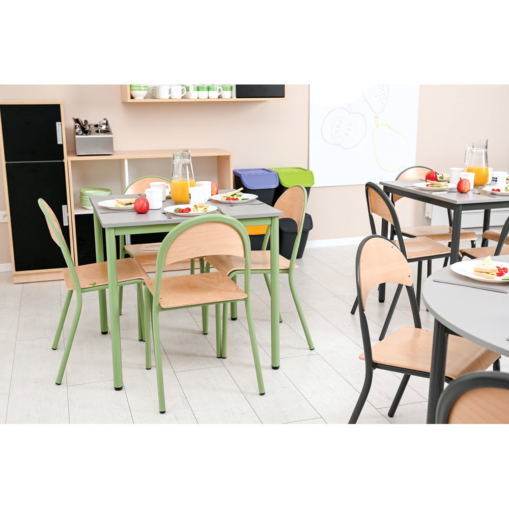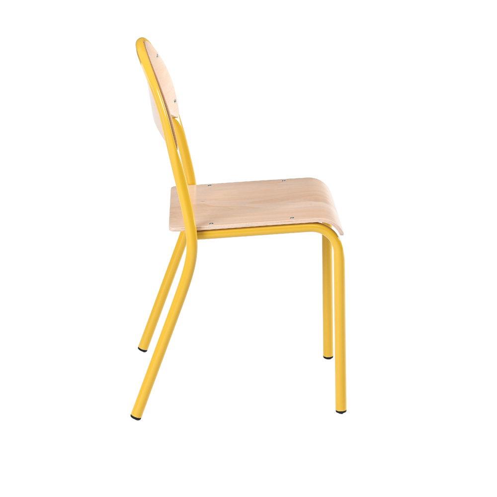 Die durchdachte Konstruktion mit den nach hinten ausgestellten Beinen sorgt für einen felsenfesten Stand. Dieser Stuhl hält auch lebhaften und dynamischen Situationen im Klassenzimmer stand. - Platzsparend und schnell stapelbar