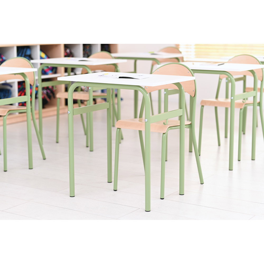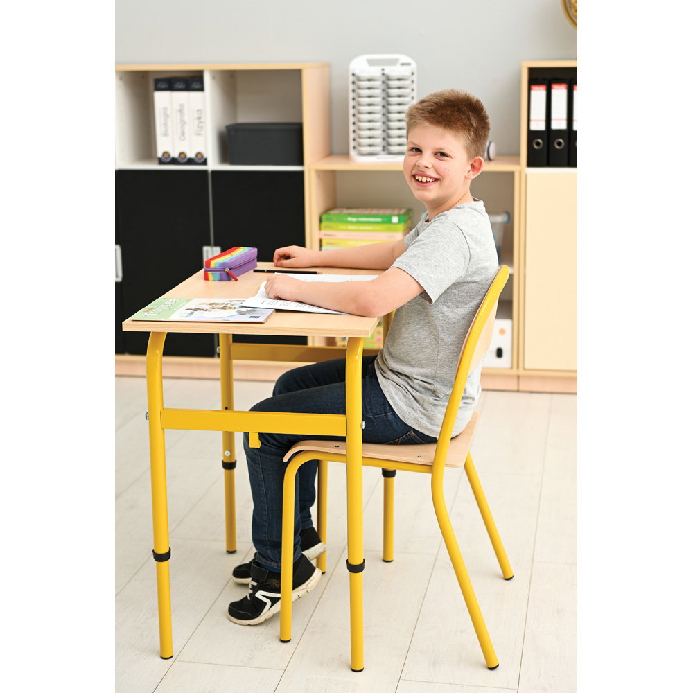 Die speziell profilierte Sitzfläche und die stützende Rückenlehne fördern eine aufrechte Haltung und beugen Ermüdungserscheinungen vor. Der Sitzkomfort bleibt auch an langen Schultagen hoch. - Geprüfte Qualität nach DIN EN 1729