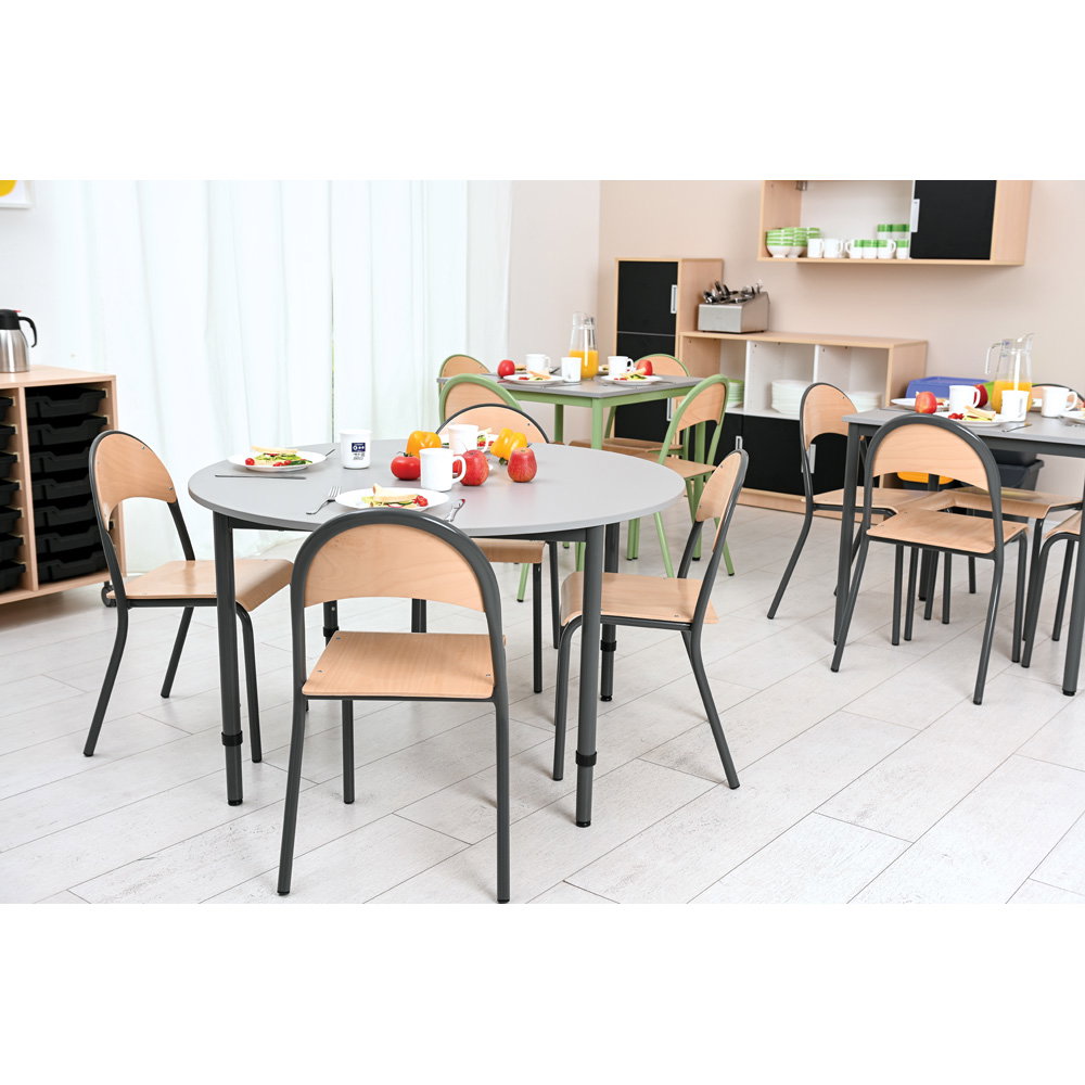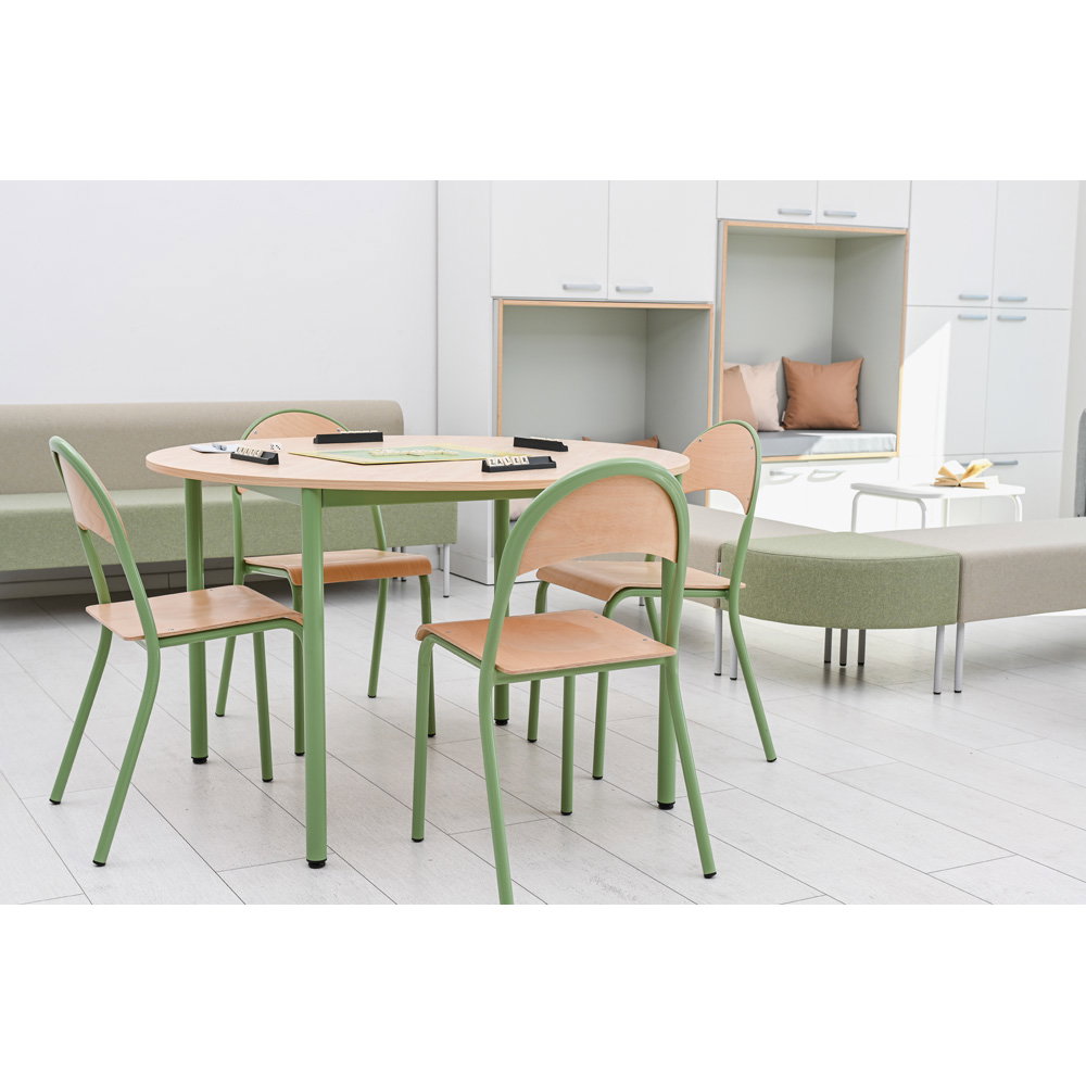 Die Stabilität ist im Schulalltag entscheidend. Das Gestell aus robustem Ovalrohr ist daher bewusst mit weit nach hinten ausgestellten Stuhlbeinen konstruiert, was eine hohe Kippsicherheit garantiert. Gleichzeitig ist der Stuhl P ein wahres Organisationstalent: Bis zu acht Stühle lassen sich sicher und platzsparend übereinanderstapeln. Das schafft im Handumdrehen Platz für neue Lernformen, Gruppenarbeiten oder die schnelle Reinigung des Raumes. Mit einer Auswahl an sechs modernen Gestellfarben können Sie zudem farbliche Akzente setzen, die perfekt zu Ihrem Raumkonzept passen.