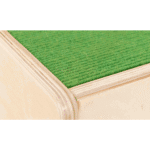Hergestellt aus robustem Holz und mit einem rutschfesten tretford-Teppichboden (Farbe 569 Moos) ausgestattet, bietet das Stufenpodest nicht nur Sicherheit, sondern auch eine angenehme Sitz- und Spieloberfläche. Die Bodenschoner aus Gummi schützen den Untergrund und sorgen dafür, dass das Podest nicht verrutscht.