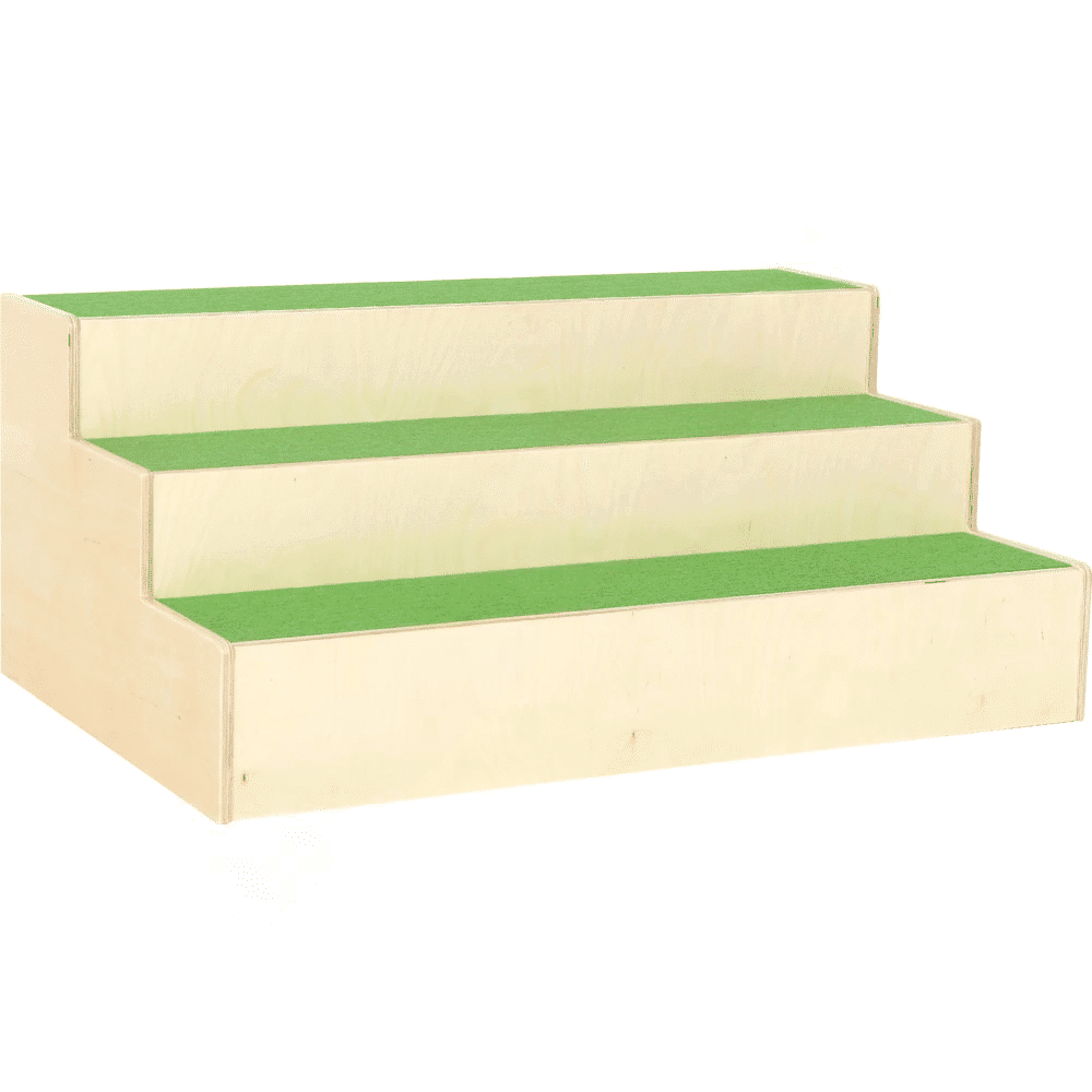 Das Stufenpodest lädt dazu ein, es als Sitzgelegenheit für den Morgenkreis oder gemeinsame Aktivitäten zu nutzen. Kinder können bequem Platz nehmen, während sie Geschichten lauschen oder an Aufführungen teilnehmen. Durch die Kombination mit weiteren geraden Stufenpodesten oder dem separat erhältlichen Eckmodul können Sie ganz einfach eine flexible Tribüne für noch mehr Zuschauer schaffen.