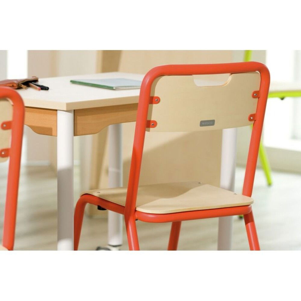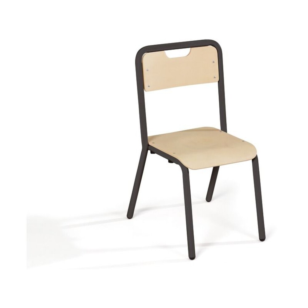 Stellen Sie sich vor, wie die Stühle nach einem langen Tag voller Kreativität und Bewegung einfach an den Tisch geschoben oder gestapelt werden. Oft sind es die Kanten der Rückenlehne, die als Erstes unter Stößen leiden. Unser Stuhl Basic mit Schutzkanten löst dieses Problem elegant: Der umlaufende Metallrahmen fängt Stöße ab und verhindert, dass das Holz absplittert oder beschädigt wird. So bleibt der Stuhl auch nach Jahren intensiver Nutzung nicht nur funktional, sondern auch optisch in einem einwandfreien Zustand. Er ist die ultimative Investition in eine langlebige und sorgenfreie Ausstattung.