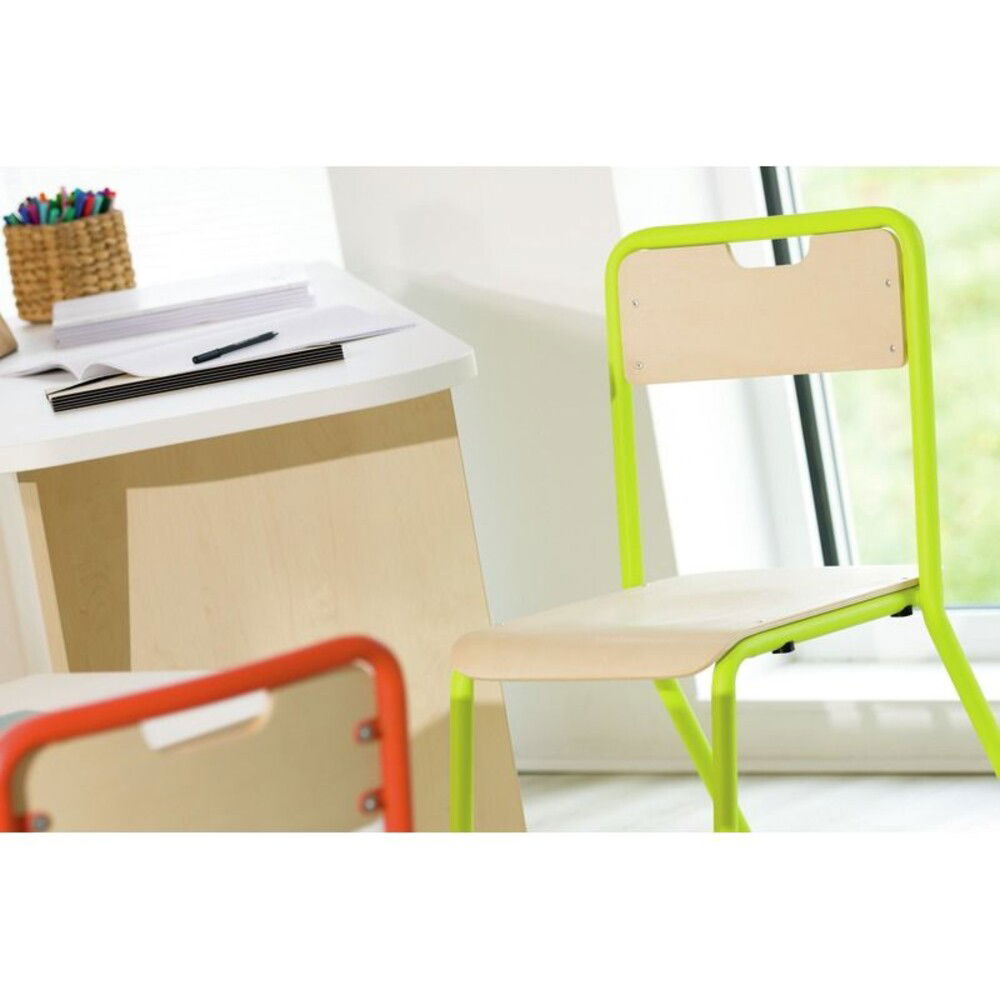 Die Sicherheit der Kinder ist unser oberstes Gebot. Die nach hinten geneigten Hinterbeine des Stuhls verhindern ein Umkippen beim Anlehnen oder Wippen und sorgen für einen jederzeit sicheren Stand. - Platzsparend und flexibel