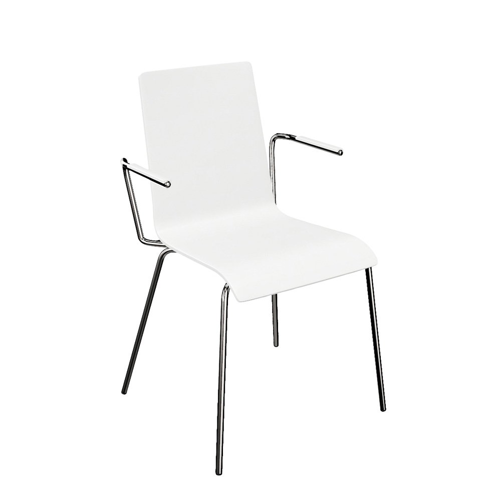Moderner Stuhl CAFE mit Armlehne. Ergonomische Sitzschale aus Buchenholz, stabiles Chromgestell, platzsparend stapelbar. Ideal für vielseitige Räume!