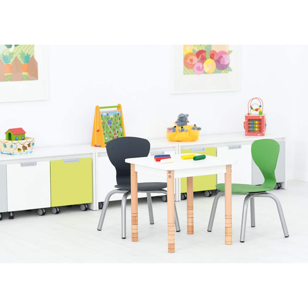 Der Stuhl Flexi wird nach den strengen Standards der DIN EN 1729 produziert und ist in verschiedenen Farben erhältlich, um jedem Raum eine fröhliche und moderne Atmosphäre zu verleihen.