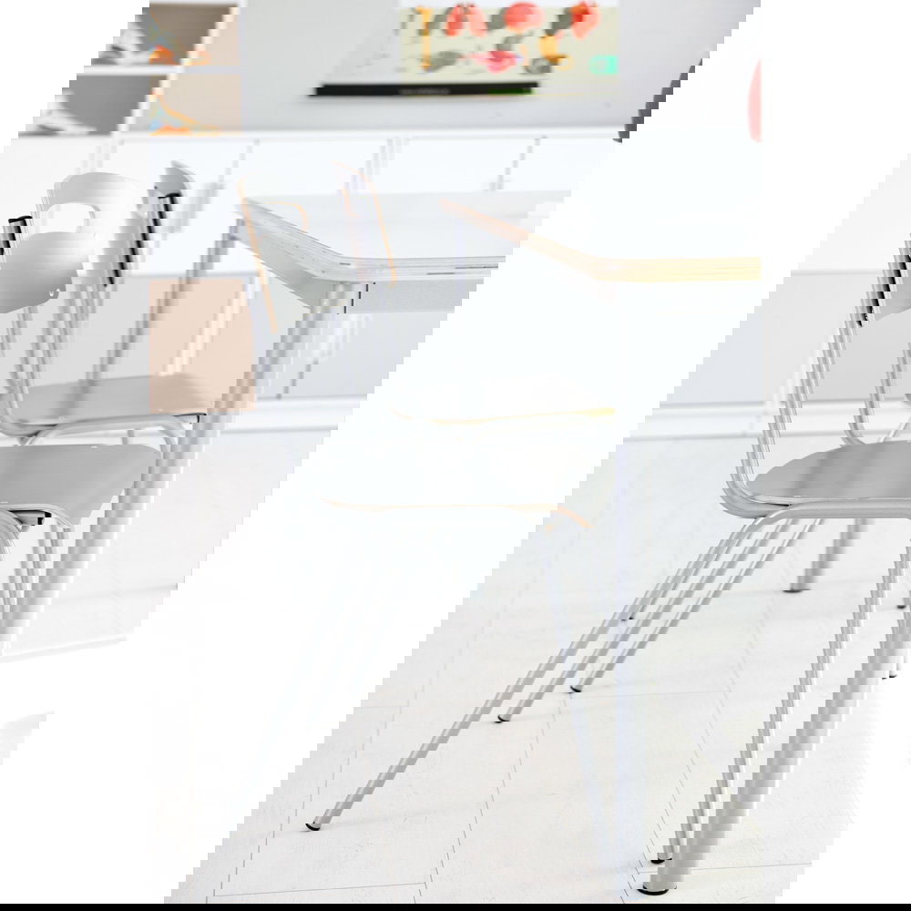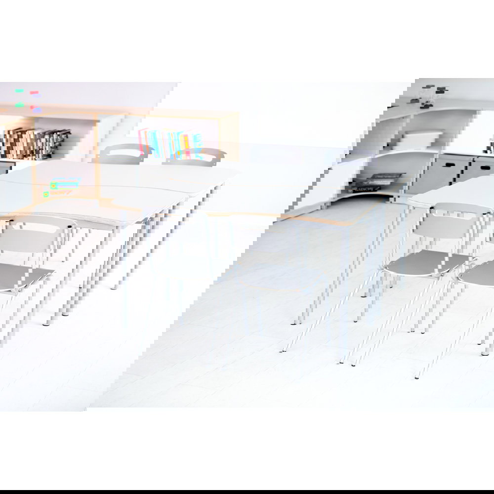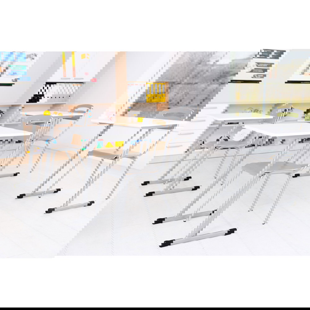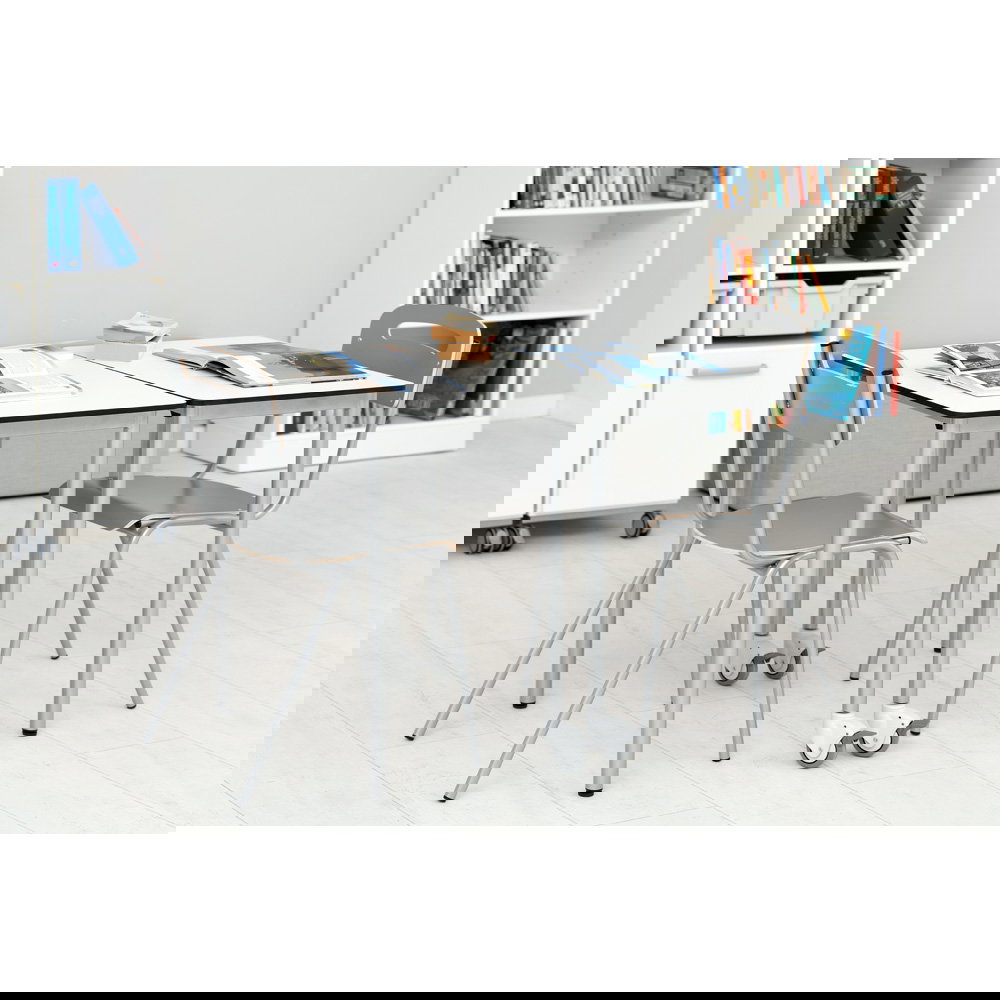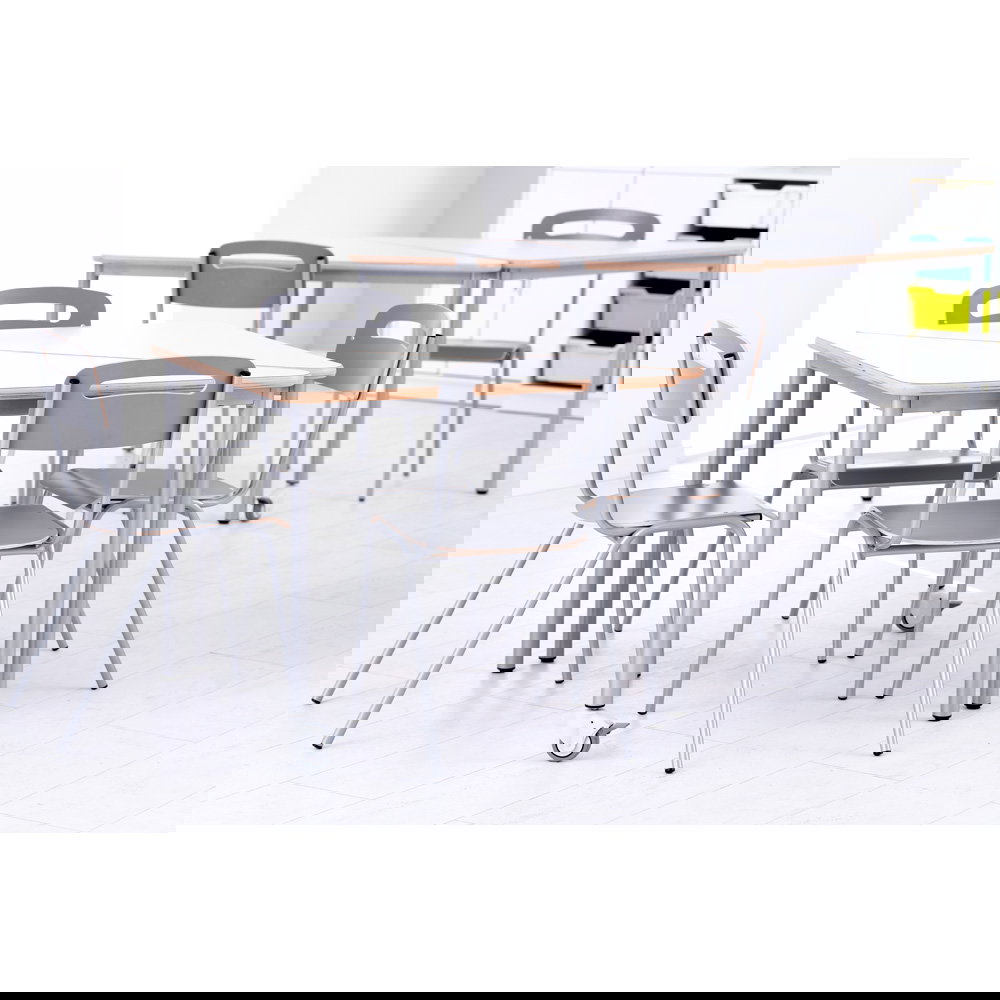 Für Gruppenarbeiten oder die Bodenreinigung ist schnell Platz geschaffen: Bis zu fünf Stühle lassen sich sicher und kompakt übereinanderstapeln. Das schafft Ordnung und Flexibilität in jedem Raum.