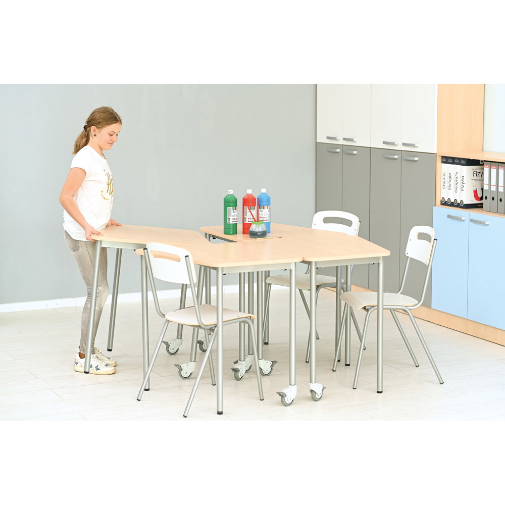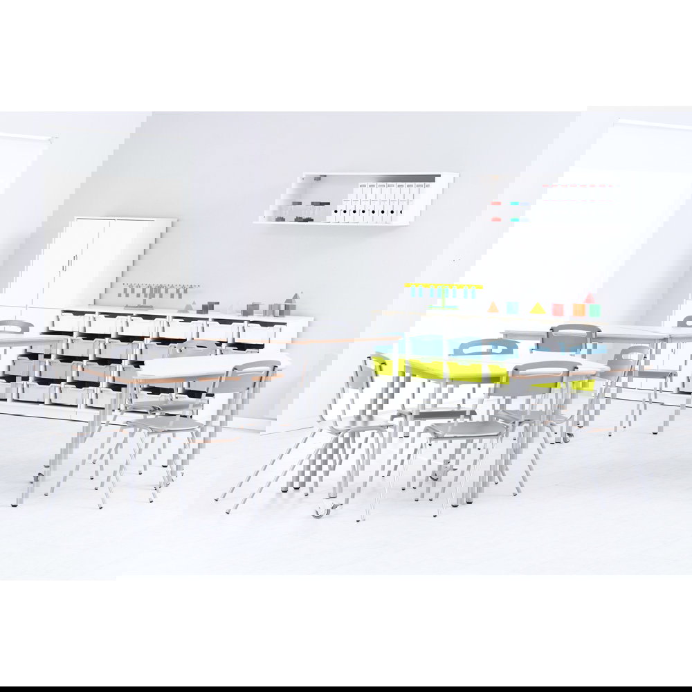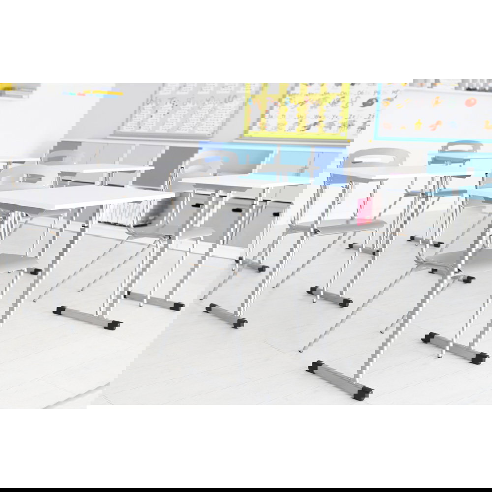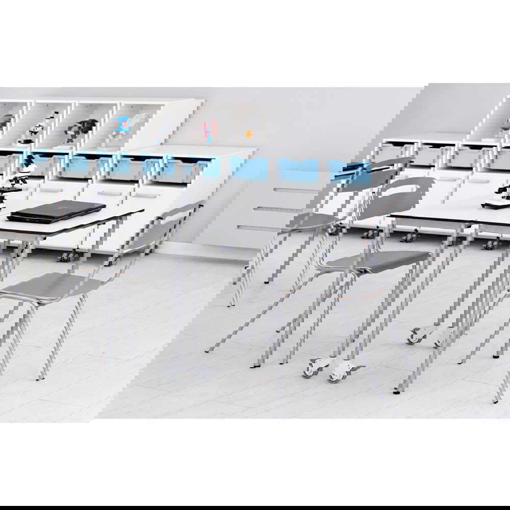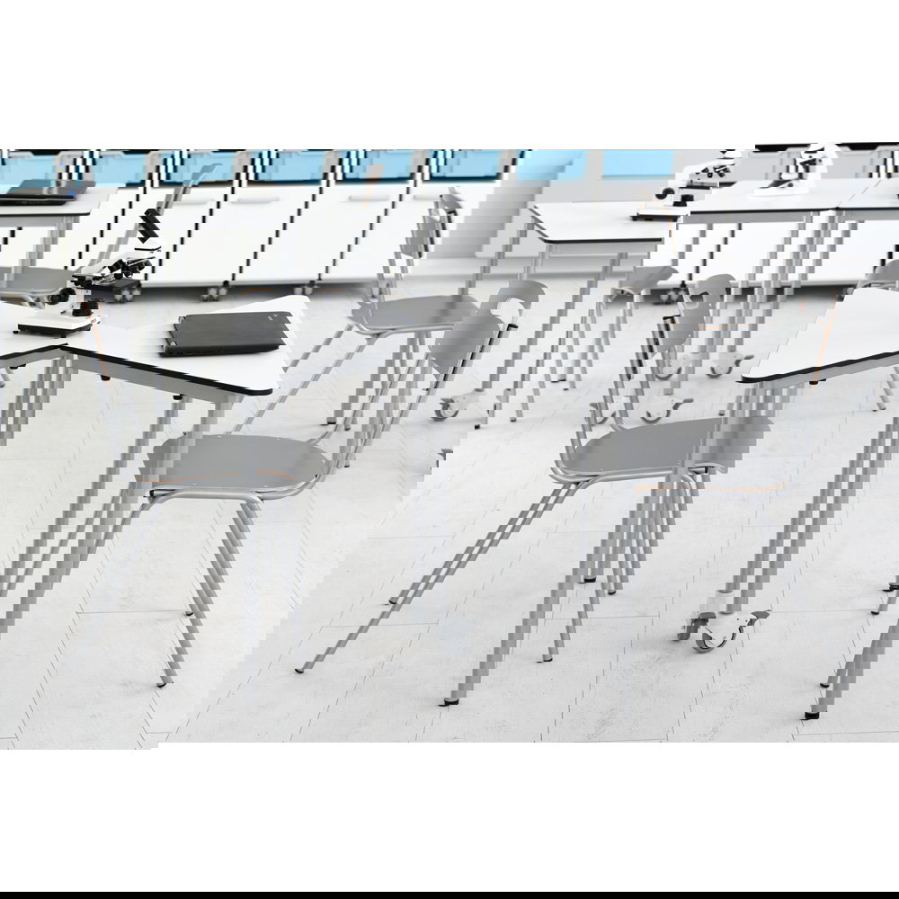 Für Gruppenarbeiten oder die Bodenreinigung ist schnell Platz geschaffen: Bis zu fünf Stühle lassen sich sicher und kompakt übereinanderstapeln. Das schafft Ordnung und Flexibilität in jedem Raum.