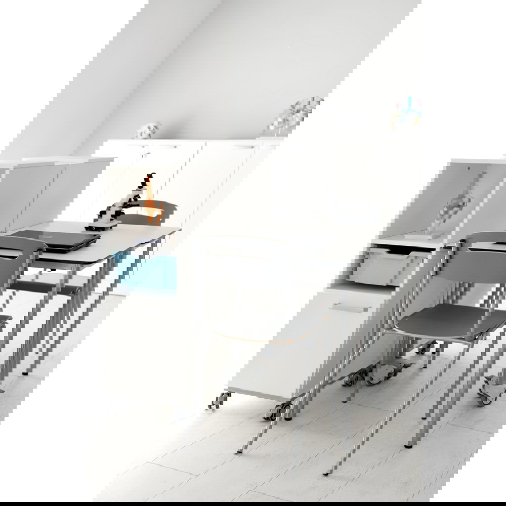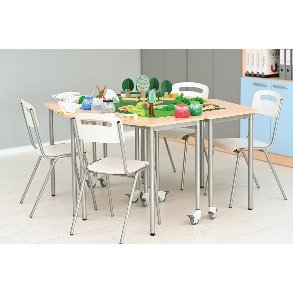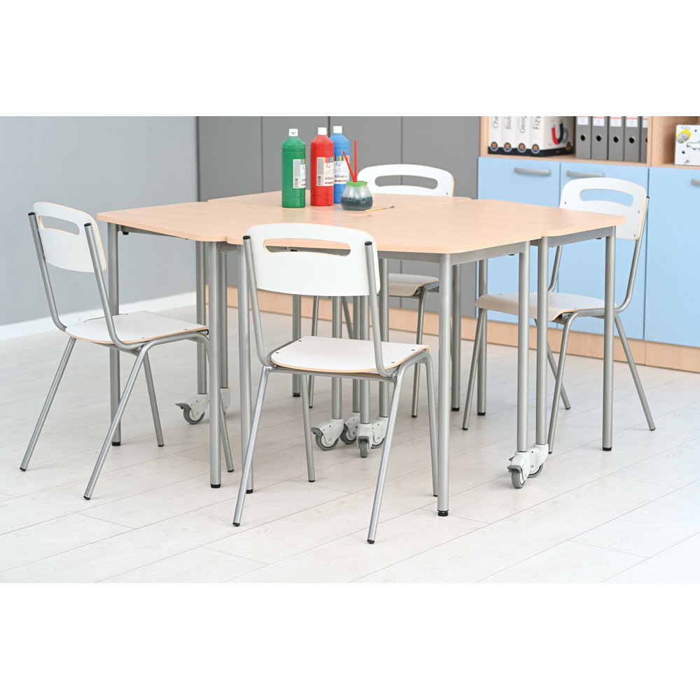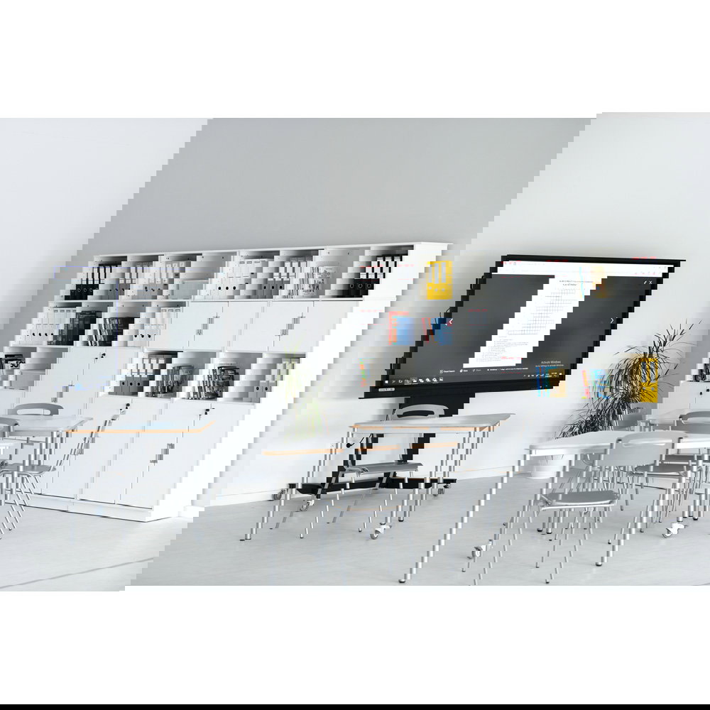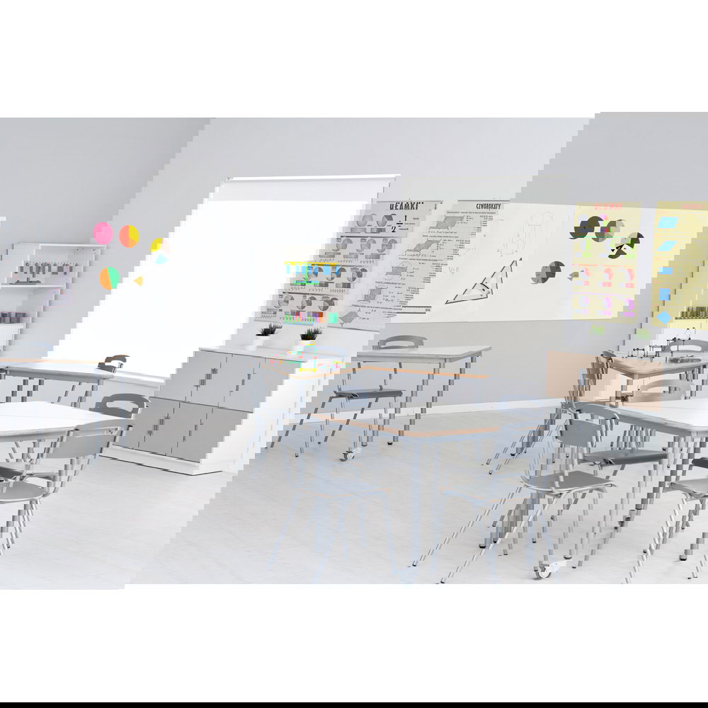 Für Gruppenarbeiten oder die Bodenreinigung ist schnell Platz geschaffen: Bis zu fünf Stühle lassen sich sicher und kompakt übereinanderstapeln. Das schafft Ordnung und Flexibilität in jedem Raum.