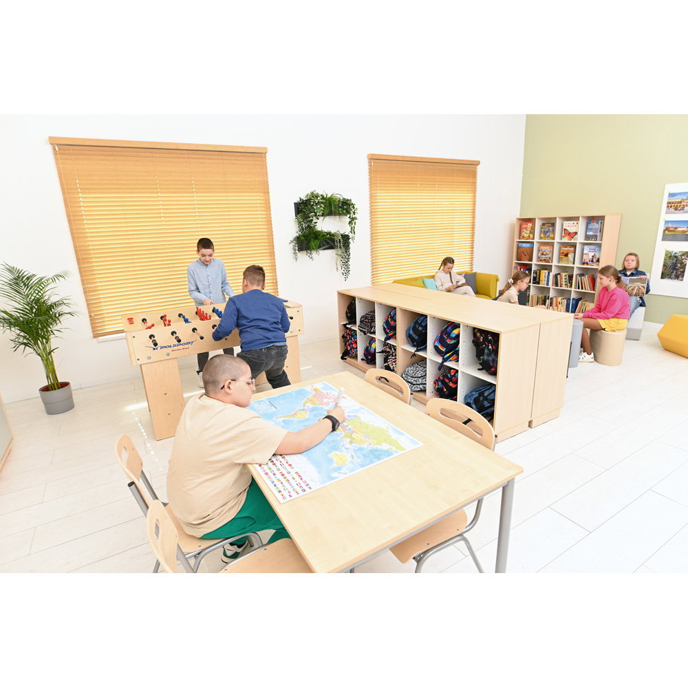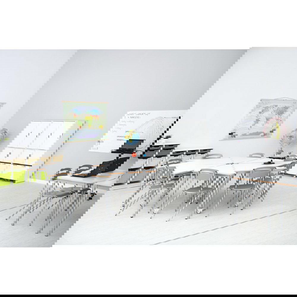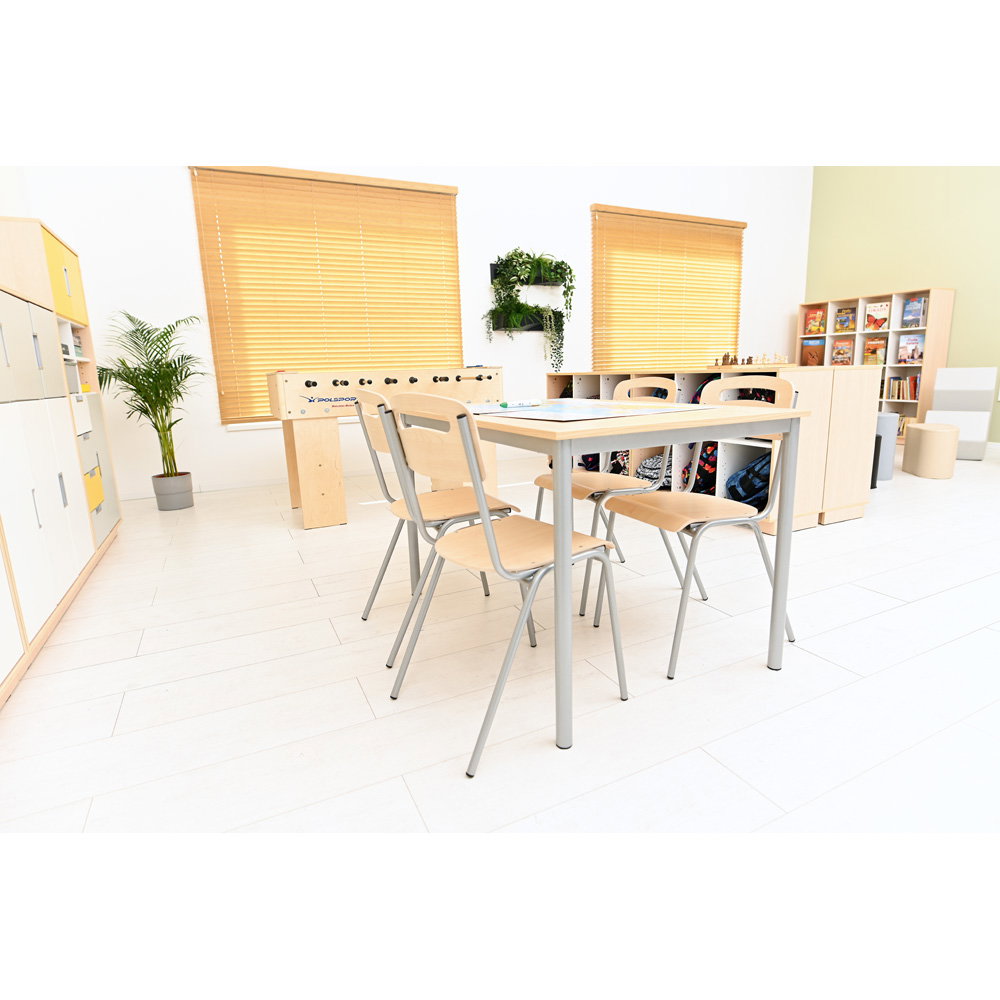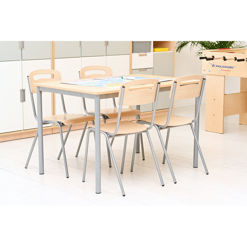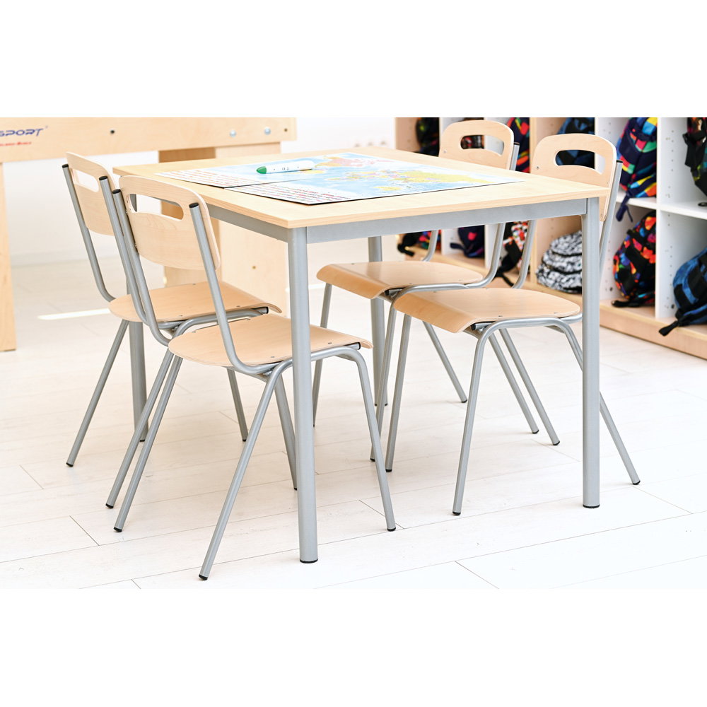 Dieser Stuhl erfüllt die höchsten europäischen Normen für Möbel in Bildungseinrichtungen. Sie erhalten ein Produkt, das auf Sicherheit, Stabilität und korrekte ergonomische Maße für die Sitzhöhe 46 cm geprüft ist.