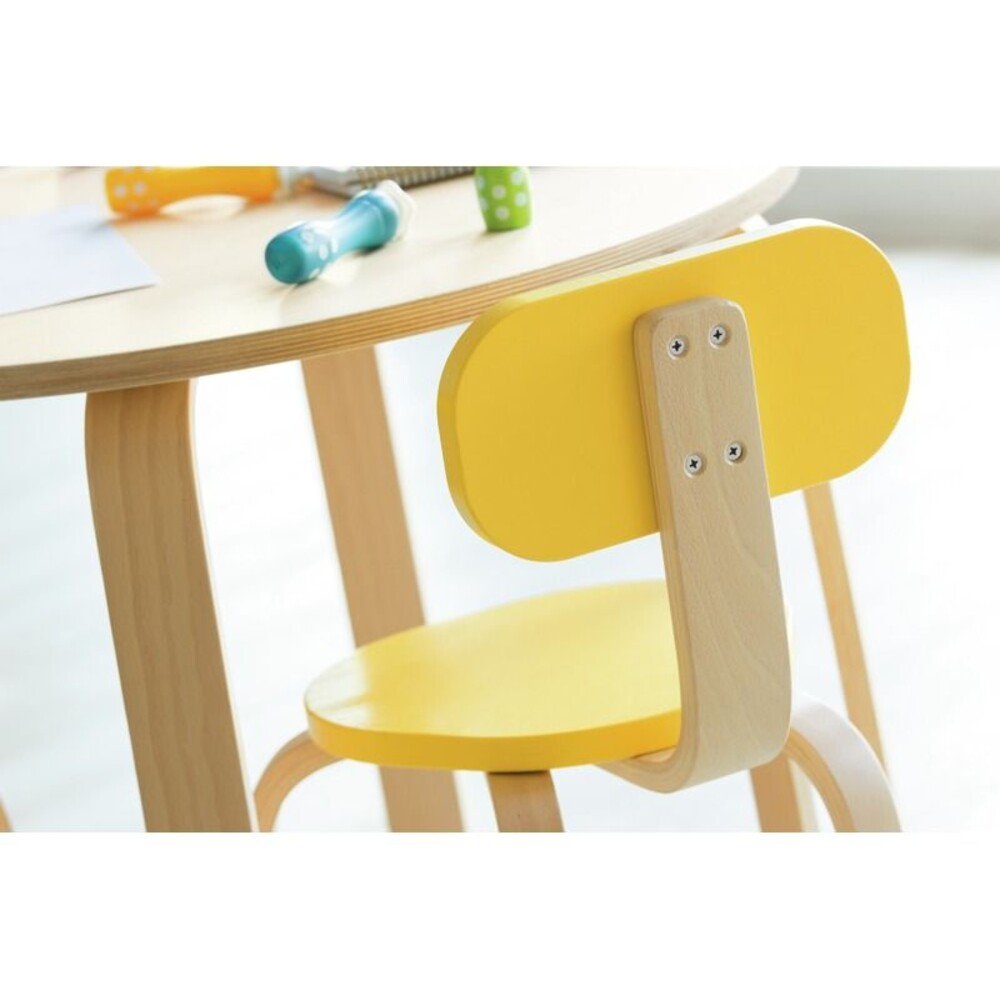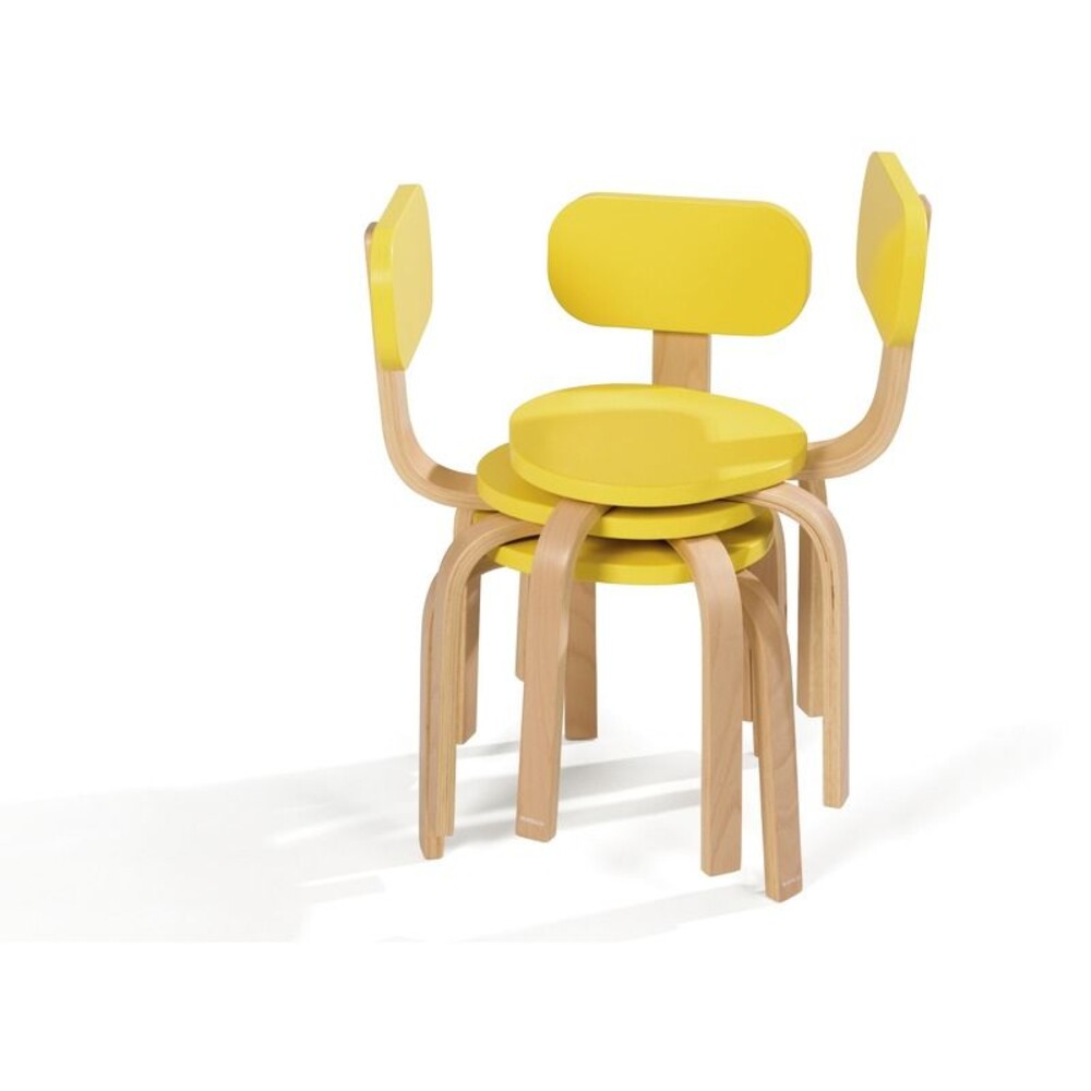 Die Sitzfläche aus lackiertem Multiplex und das Gestell aus Buchenmultiplex machen den Stuhl zu einem treuen Begleiter über viele Jahre. Die glatten Oberflächen lassen sich nach dem Basteln oder Essen im Handumdrehen feucht abwischen. - Ergonomische Anpassung an jede Körpergröße