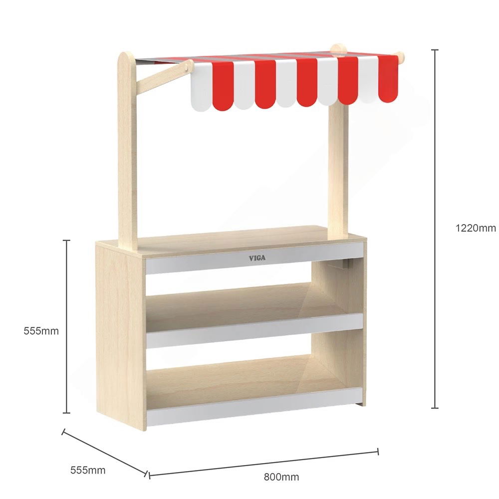 Durch die schrägen Regalböden und die authentische Markise fühlen sich Kinder sofort wie in einem echten Laden. Sie lernen spielerisch, Waren zu kategorisieren (z.B. „Obst kommt nach oben, Dosen nach unten“) und entwickeln ein Verständnis für Ordnung und Präsentation. - Förderung sozialer Kompetenzen