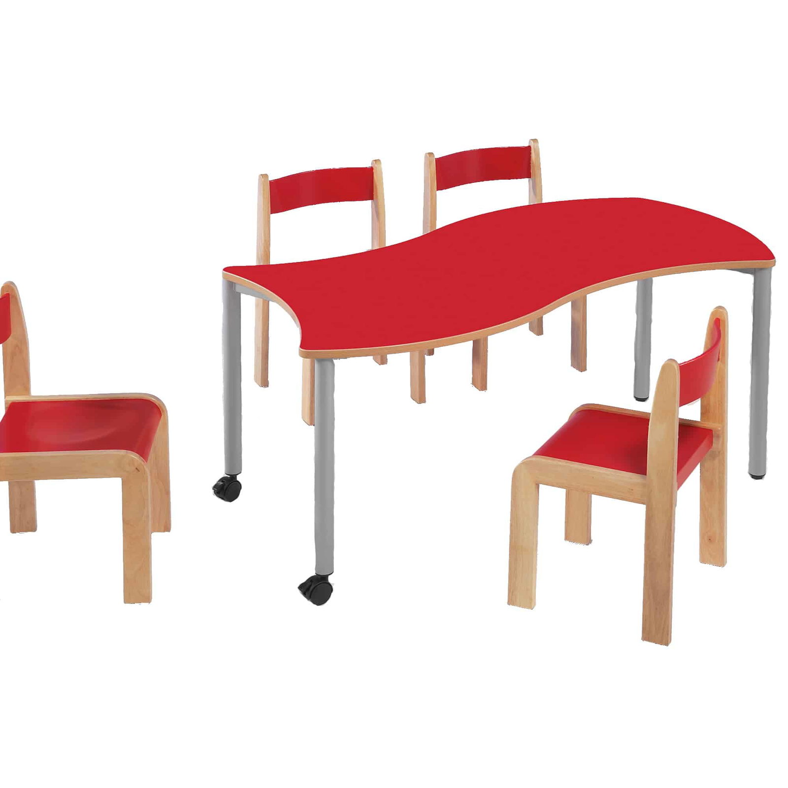 Bringen Sie Bewegung, Stabilität und modernes Design in Ihre Lern- und Arbeitswelten! Der fahrbare, rechteckige Wellentisch aus unserer „Swing-It Steely“-Serie ist die perfekte Antwort auf die Anforderungen moderner pädagogischer Konzepte. Er kombiniert ein robustes Stahlrohrgestell mit der unschlagbaren Flexibilität von feststellbaren Rollen. Ob als Einzelarbeitsplatz, als Teil einer kreativen Lerninsel oder in einer langen Tischreihe – dieser Tisch lässt sich mühelos umgestalten und passt sich jeder Situation an. Mit seiner pflegeleichten Oberfläche und der dynamischen Form ist er der ideale Mittelpunkt für Räume, in denen Zusammenarbeit, Kreativität und Flexibilität im Vordergrund stehen.