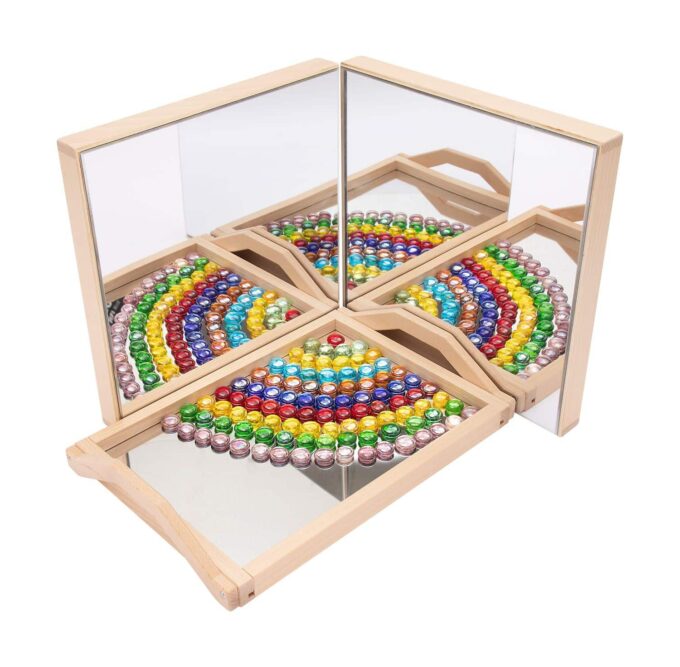 - Fördert Kreativität und Sinneswahrnehmung: Das Spiel mit Licht und Spiegelungen regt die Fantasie an und fördert die visuelle Wahrnehmung, während Kinder lernen, die Welt aus neuen Blickwinkeln zu betrachten.