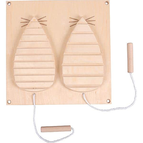 Unsere Tafel – Raspel-Mäuschen ist ein bezauberndes, dekoratives Element aus Sperrholz, das Kinder zum Spielen und Entdecken einlädt. Die niedlichen Mäuschenmotive regen die Kleinen dazu an, die gefrästen Einkerbungen mit dem angebundenen Stift zu erforschen. So werden die Fingerfertigkeit und Feinmotorik spielerisch verbessert.