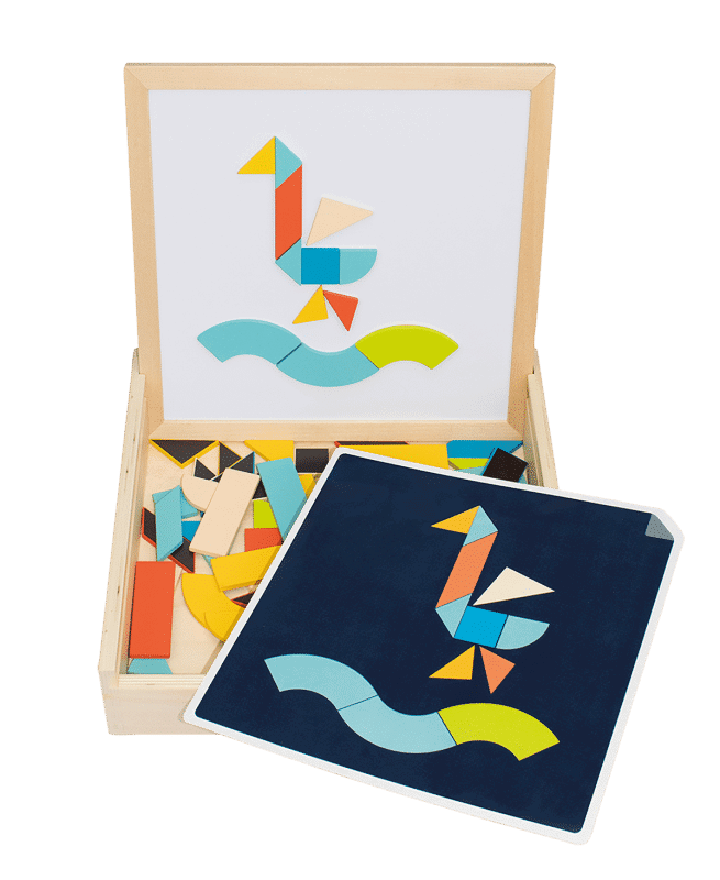 - Inspiriert vom klassischen Tangram, fasziniert TanGeo durch die endlosen Möglichkeiten, durch einfache Handgriffe neue Formen entstehen zu lassen.