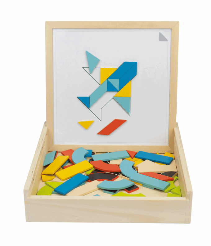 Erwecke mit TanGeo deine Kreativität und erschaffe bunte geometrische Kunstwerke. Dieses Spielzeug ist ein Tor zur Welt der Formen und Farben, das durch Magnete und Holz zum Leben erweckt wird.