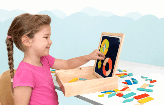 - TanGeo schult Feinmotorik und Konzentrationsfähigkeit, während es gleichzeitig das Verständnis für Symmetrie und räumliches Denken fördert.