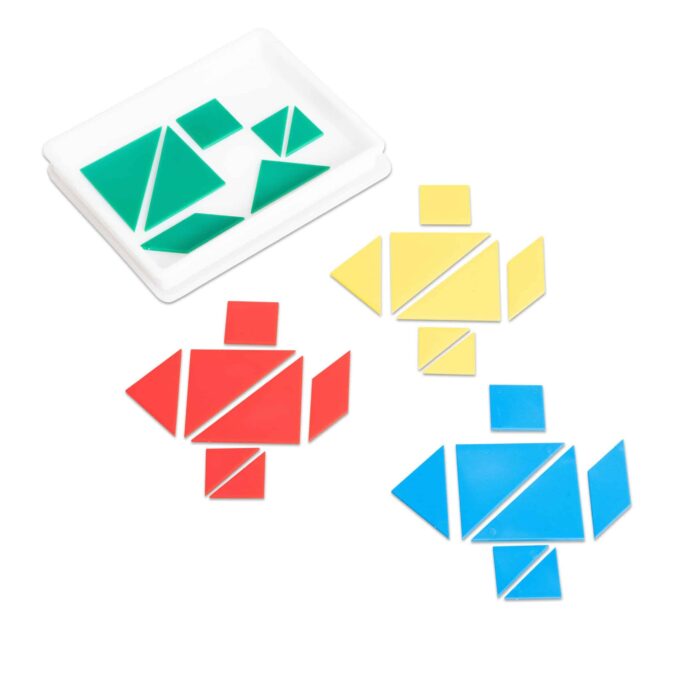 - Inhalt: 28 Teile (4 Tangramspiele mit je 7 Formen)