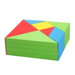 Tangram Puzzle Mega – extra groß und vielseitig: Das Tangram Puzzle ist eine Herausforderung für Kinder und Erwachsene. Es ist schwieriger, als es auf den ersten Blick aussieht, die sieben geometrischen Formen so zu legen, dass sie ein geschlossenes Quadrat bilden. Mit den großformatigen Softblocks macht die Bewältigung der Herausforderung doppelt so viel Spaß. Kinder können die dreidimensionalen Bausteine anfassen und von allen Seiten betrachten. Ist das Tangram Puzzle vollständig zusammengefügt, bilden die Softblocks eine ebene Fläche, die sich aufgrund ihrer Größe bequem als Ablagefläche für Spielzeug und zum Sitzen nutzen lässt.