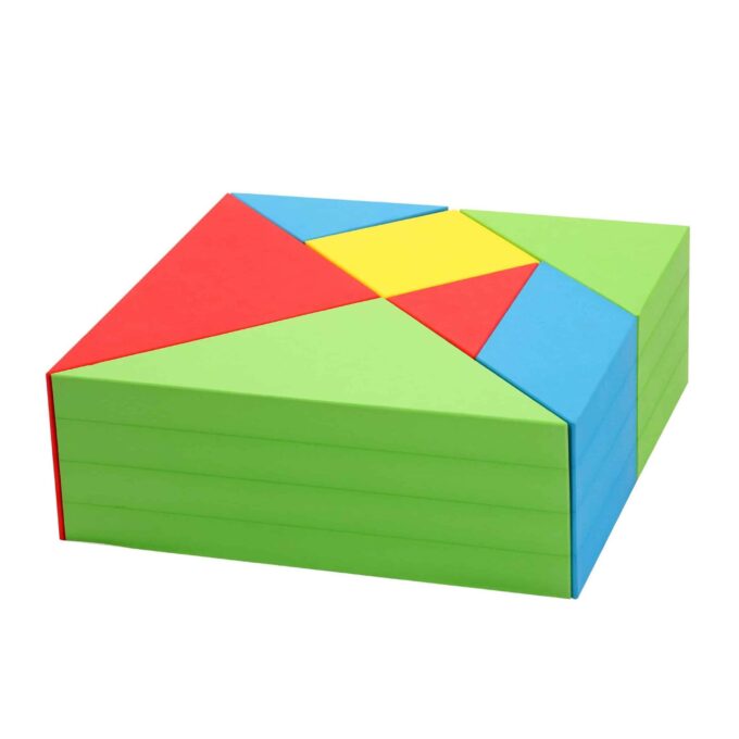 Tangram Puzzle Mega – extra groß und vielseitig: Das Tangram Puzzle ist eine Herausforderung für Kinder und Erwachsene. Es ist schwieriger, als es auf den ersten Blick aussieht, die sieben geometrischen Formen so zu legen, dass sie ein geschlossenes Quadrat bilden. Mit den großformatigen Softblocks macht die Bewältigung der Herausforderung doppelt so viel Spaß. Kinder können die dreidimensionalen Bausteine anfassen und von allen Seiten betrachten. Ist das Tangram Puzzle vollständig zusammengefügt, bilden die Softblocks eine ebene Fläche, die sich aufgrund ihrer Größe bequem als Ablagefläche für Spielzeug und zum Sitzen nutzen lässt.