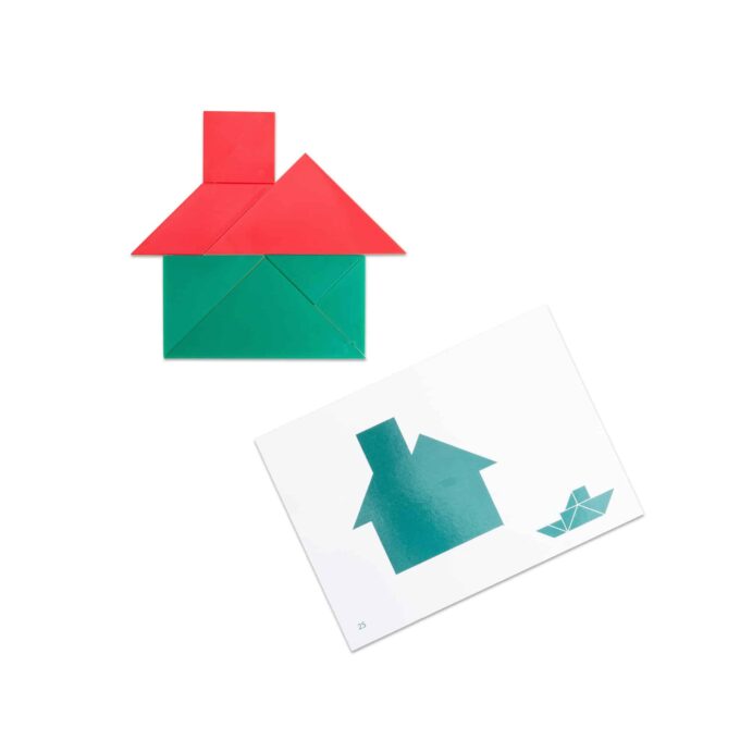 - 24 doppelseitig bedruckte Tangram-Karten (14 x 17 cm)