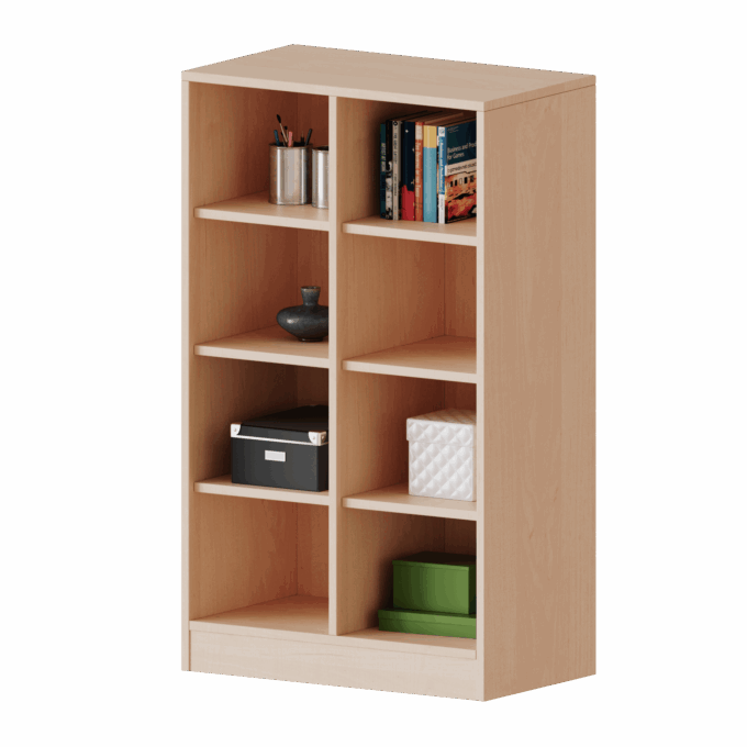 - Elegante Sichtrückwand als Raumteiler: Die Rückwand ist vollständig verkleidet und optisch ansprechend gestaltet. Dadurch kann das Regal frei im Raum aufgestellt werden, um Zonen zu definieren, Lernbereiche zu schaffen oder als stilvoller Sichtschutz zu dienen.