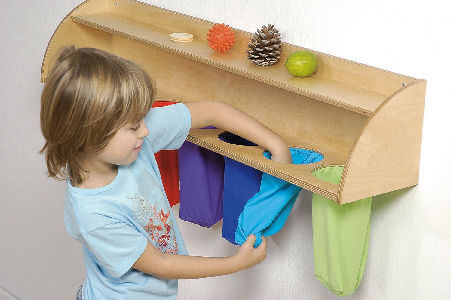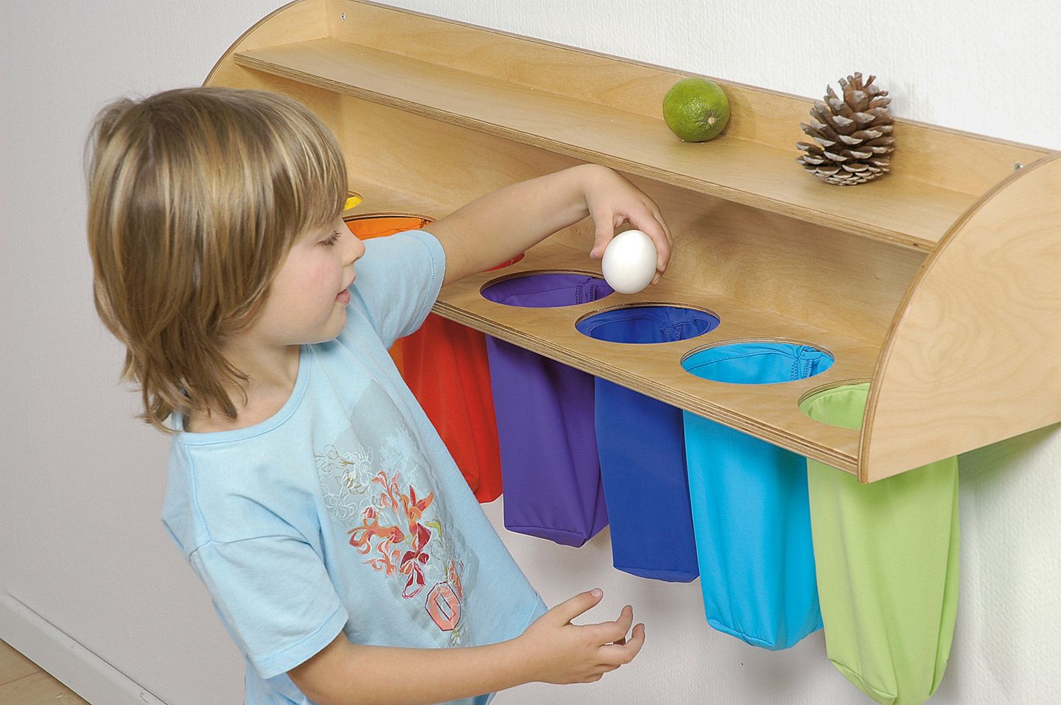 Besonders praktisch ist die Ablageleiste, die fest an der Wand montiert wird und den Kindern jederzeit zur Verfügung steht. Hier können die Tastenbeutel sicher aufgehängt und leicht erreicht werden. Das ansprechende Design der Wandleiste macht sie zu einem integralen Bestandteil von Spielzimmern, Kindergärten oder jeder Einrichtung, die die frühkindliche Entwicklung unterstützt. Die Tastbeutel Regenbogen fördern nicht nur den Tastsinn, sondern machen das Lernen zu einem multisensorischen Erlebnis.