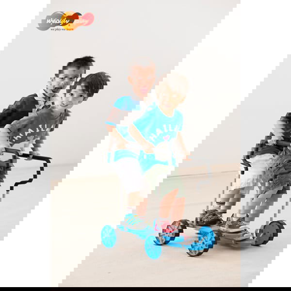 Komm ich nehm dich mit … auf meinem neuen Weplay-Taxi! Um den Roller zu kontrollieren muss das Körpergewicht verlagert werden. Dadurch bewegt man sich nach vorne oder hinten und trainiert so das Gefühl für Balance. Dazu kommt, dass man lernt die Kontrolle zu behalten und im Team zu kooperieren, denn der Taxi Roller garantiert auch zu zweit viel Spaß. Der Roller sollte unter Aufsicht von Erwachsenen und mit Schuhen verwendet werden.