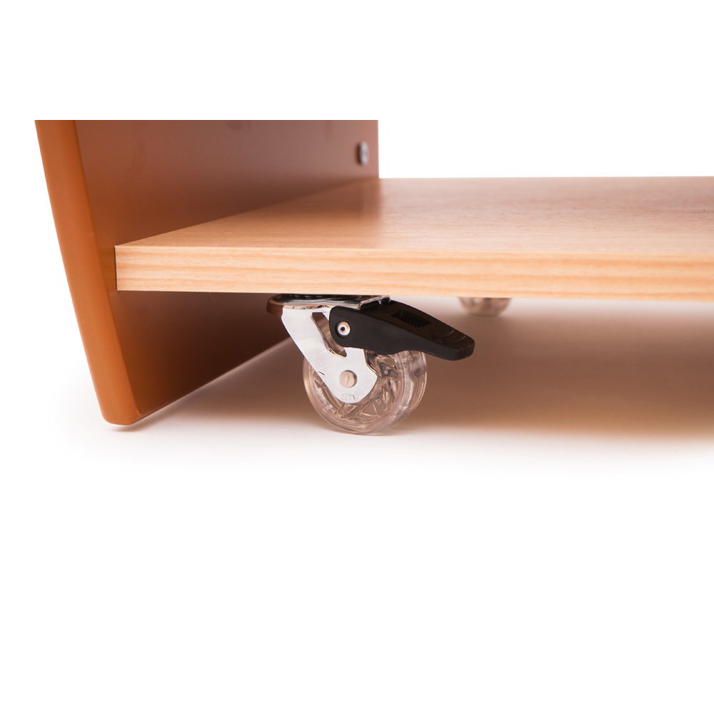 Gefertigt aus 18 mm starker, laminierter Spanplatte, ist das Regal äußerst stabil. Die feststellbaren Bremsen sorgen für einen sicheren Stand, wenn der Bücherwagen geparkt wird.
