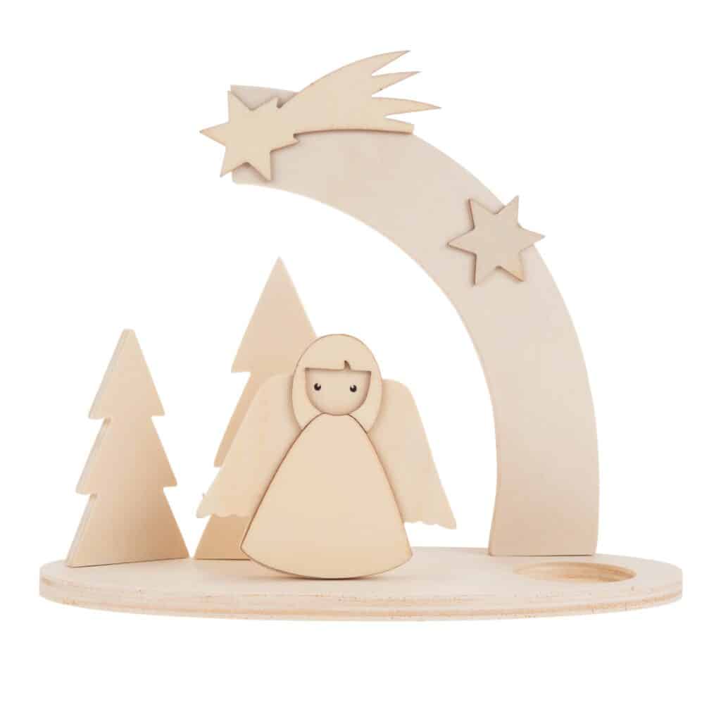 Teelichthalter „Engelsbogen“ – Himmlische Weihnachtsstimmung aus warmem Kiefernholz