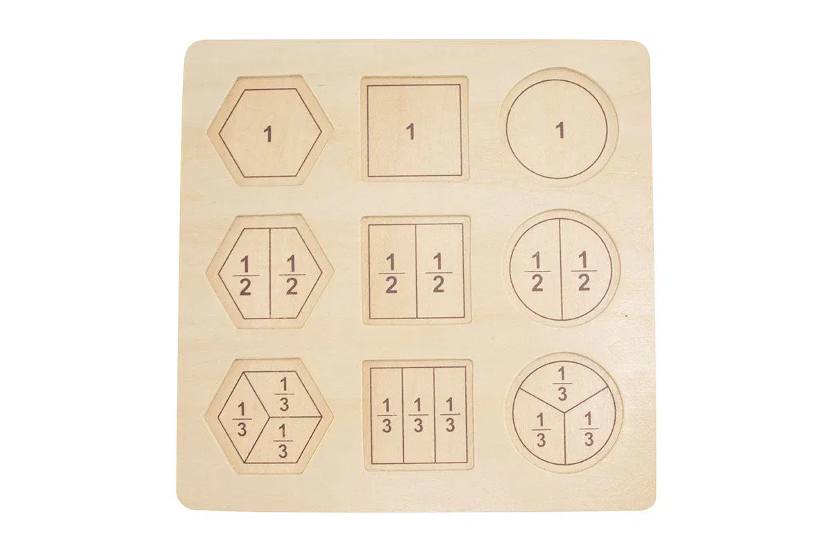 - Selbstständiges Entdecken: Durch das Puzzeln der Formen (Kreise, Quadrate etc.) erkennen die Kinder eigenständig die Zusammenhänge zwischen den verschiedenen Bruchgrößen (1/2, 1/3, 1/4).