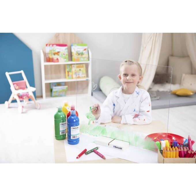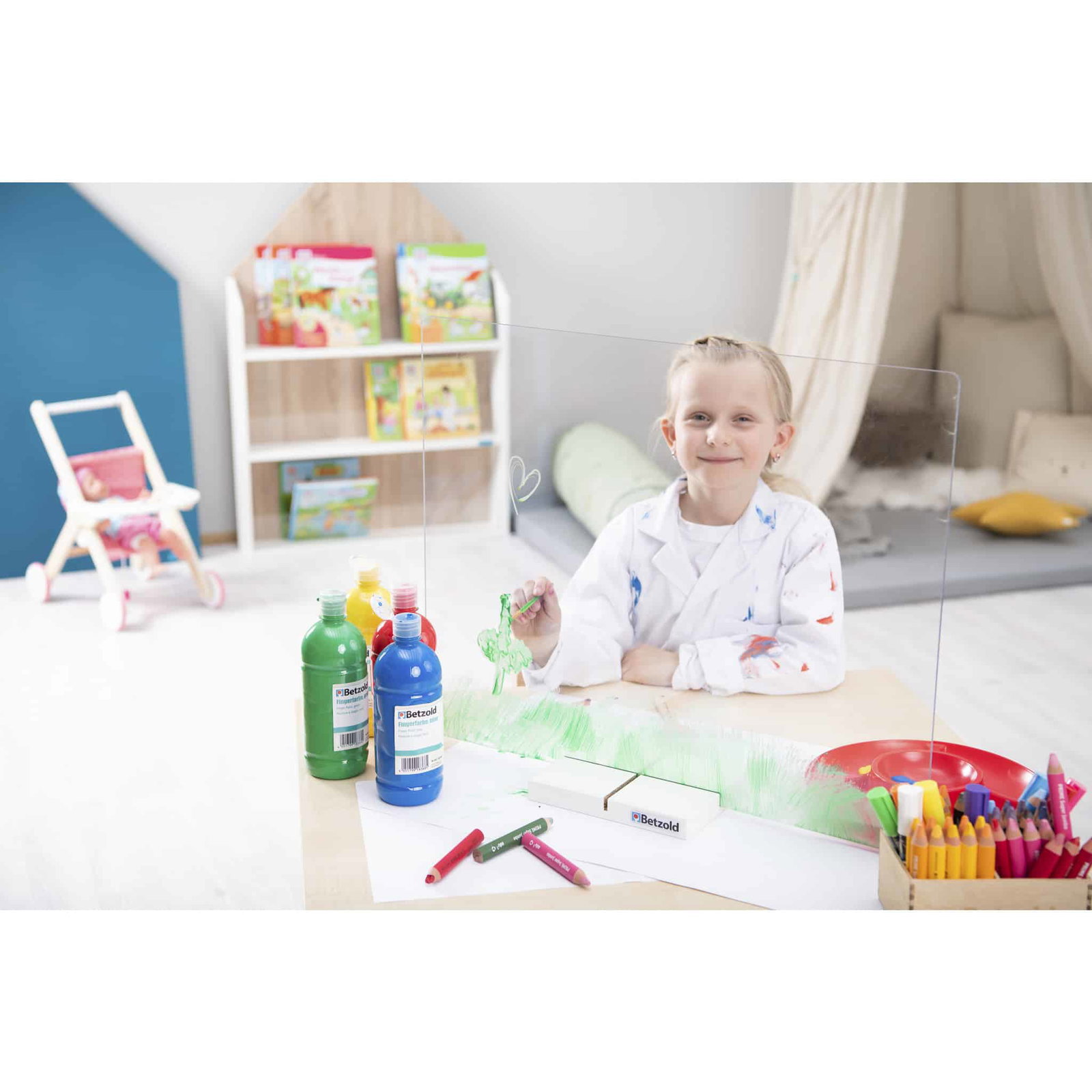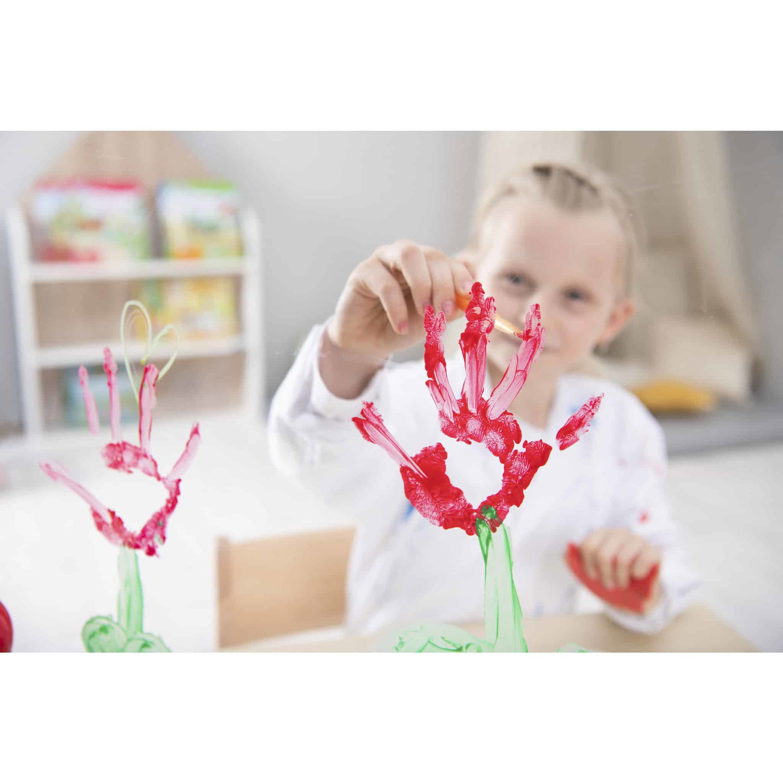 Für den pädagogischen Alltag bieten die Farben besonders spannende Anwendungsmöglichkeiten. Experimentieren Sie gemeinsam mit den Kindern mit der Spritztechnik, indem Sie Farbe mit einer alten Zahnbürste über das Bild stäuben und so tolle Texturen erschaffen. Oder nutzen Sie kleine Formschwämme, um faszinierende Muster und schnelle Stempelabdrücke zu erzeugen. Bei all diesen kreativen Abenteuern müssen Sie sich keine Sorgen um aufwendige Reinigungsprozesse machen. Die Temperafarben sind aus fast allen gängigen Textilien (mit Ausnahme von empfindlichen Stoffen wie Seide und Samt) auswaschbar. Zudem ist die Farbe komplett vegan und wird ganz ohne tierische Erzeugnisse hergestellt. Die großzügigen PET-Kunststoffflaschen sind mit einem cleveren Dosierverschluss ausgestattet, der ein sauberes, tropffreies und sparsames Abfüllen in kleine Paletten oder Becher garantiert.