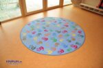 - Sitzkreis und Gruppenspiele: Der runde Teppich eignet sich hervorragend für Sitzkreise und fördert die Interaktion zwischen Kindern, indem er einen klar definierten Raum bietet.