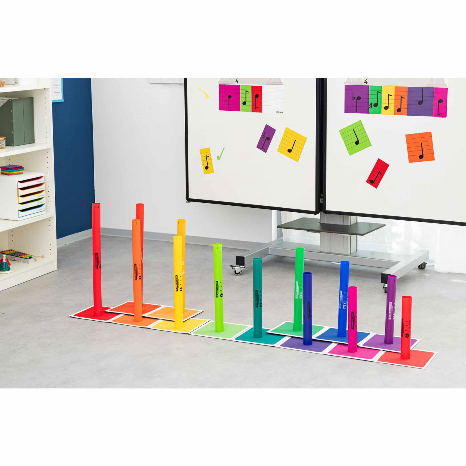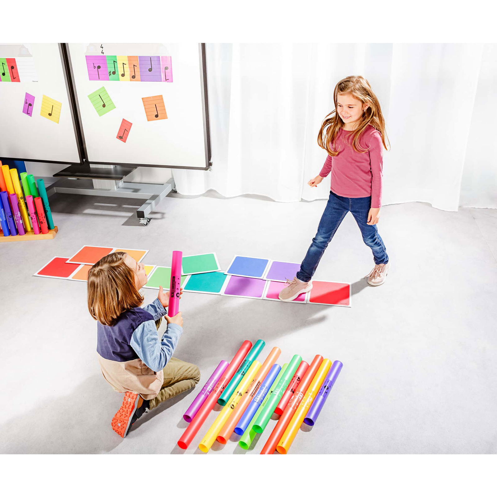 Die Fliesen sind in den Boomwhackers®-Grund- und Zwischentönen erhältlich. Kombinieren Sie sie mit anderen Instrumenten oder nutzen Sie die Farben, um Aufmerksamkeit und Struktur in den Unterricht zu bringen.