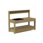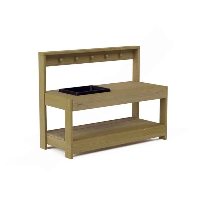 Die Terra Matschküche ist ein wunderbarer Ort, an dem Kinder ihre Kreativität entfalten und auf spielerische Weise die Welt der Küche erkunden können. Hergestellt aus imprägniertem Kiefernholz und inspiriert von Montessori- und Reggio-Pädagogik, ermöglicht dieses Möbelstück eine anregende Erfahrung mit natürlichen Materialien wie Sand und Wasser.
