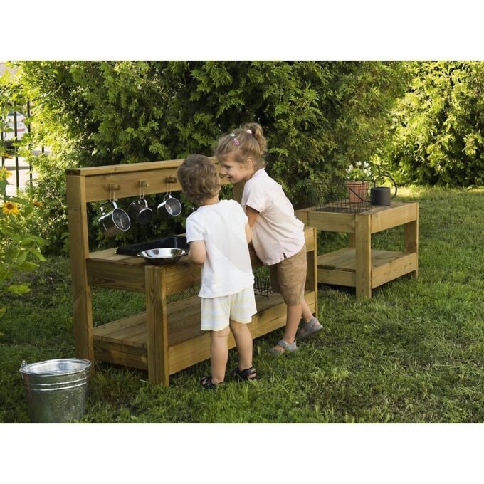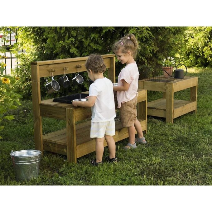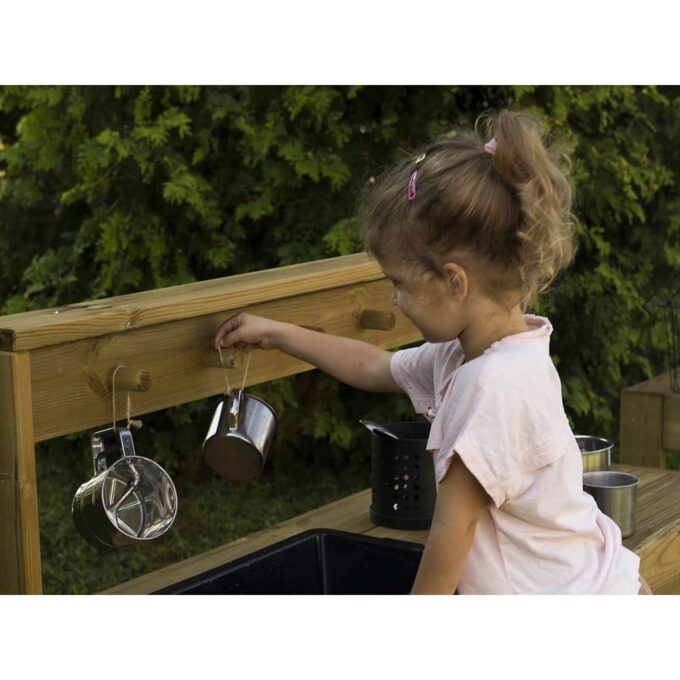 - Fördert soziale Fähigkeiten: Das Spielen in der Matschküche fördert das Rollenspiel und die Kommunikation.